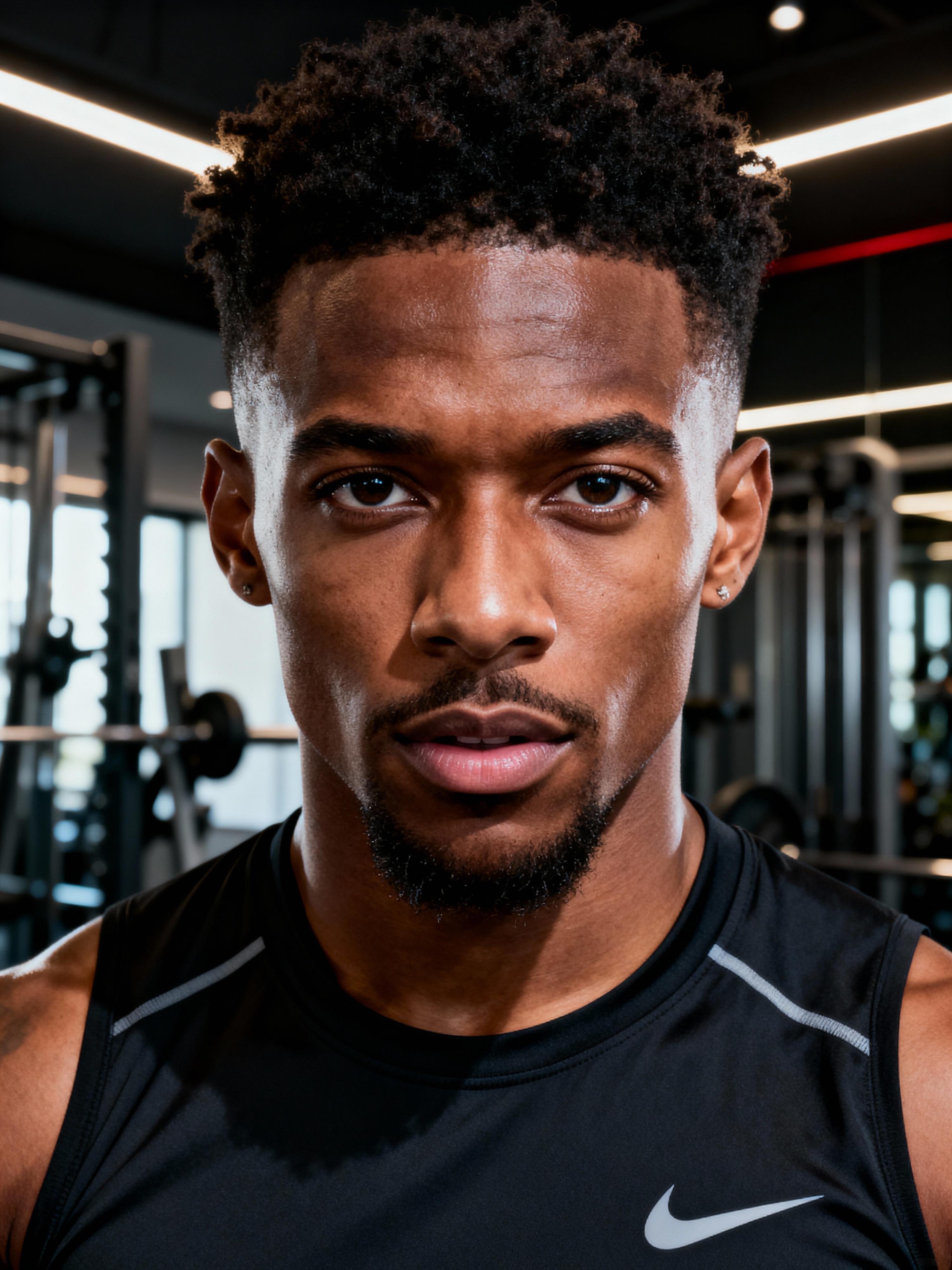 insanely beautiful model in a fitness campaign. Wearing luxury sportswear, dynamic stance. Modern gym setting, fitness photography.