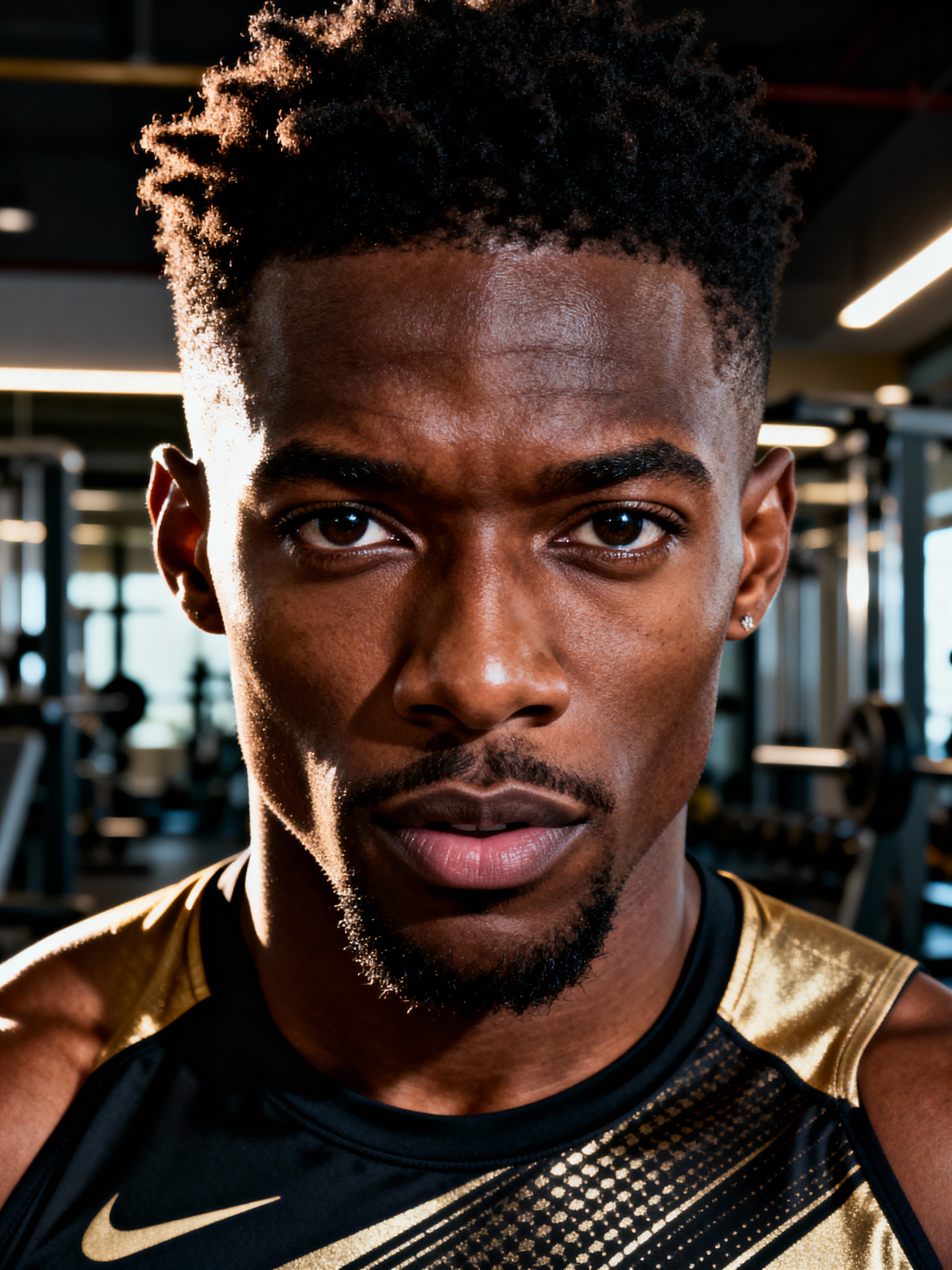 insanely beautiful model in a fitness campaign. Wearing luxury sportswear, dynamic stance. Modern gym setting, fitness photography.