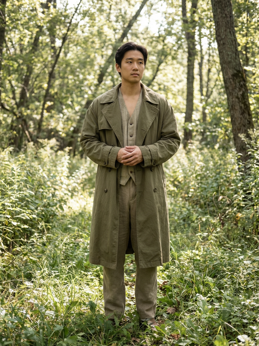 insanely beautiful model in a sustainable fashion campaign. Wearing sustainable high fashion, mindful stance. Natural setting, eco-fashion photography.