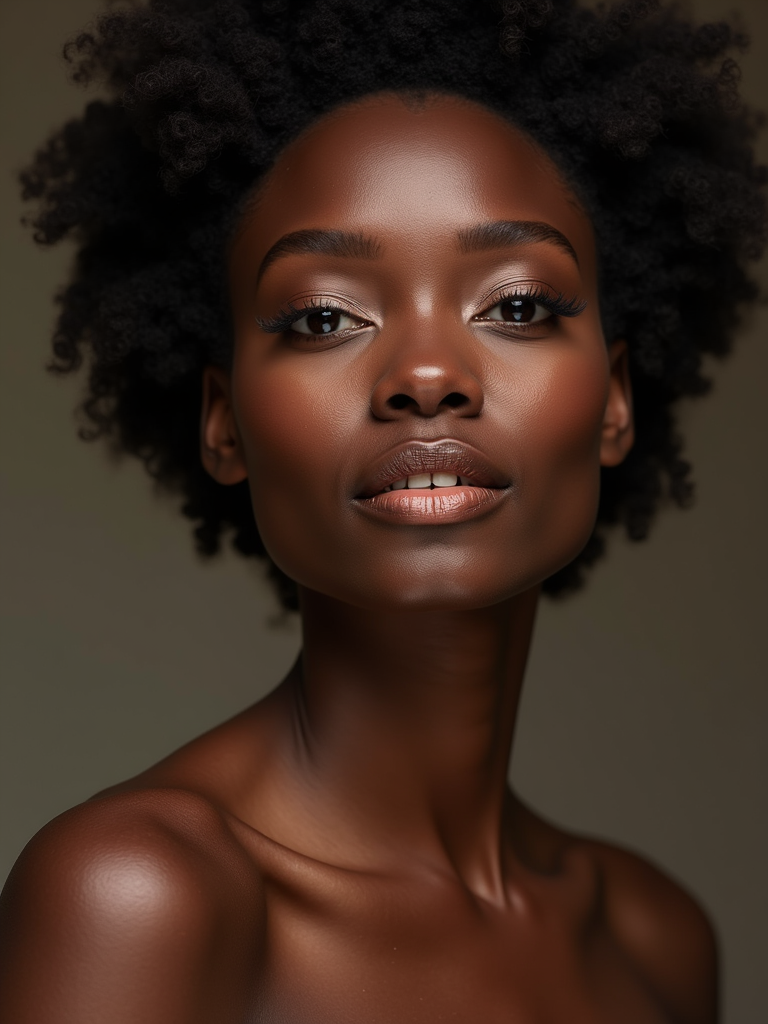 insanely beautiful model in a beauty campaign. Flawless makeup, perfect skin, elegant expression . Clean studio lighting, beauty photography.