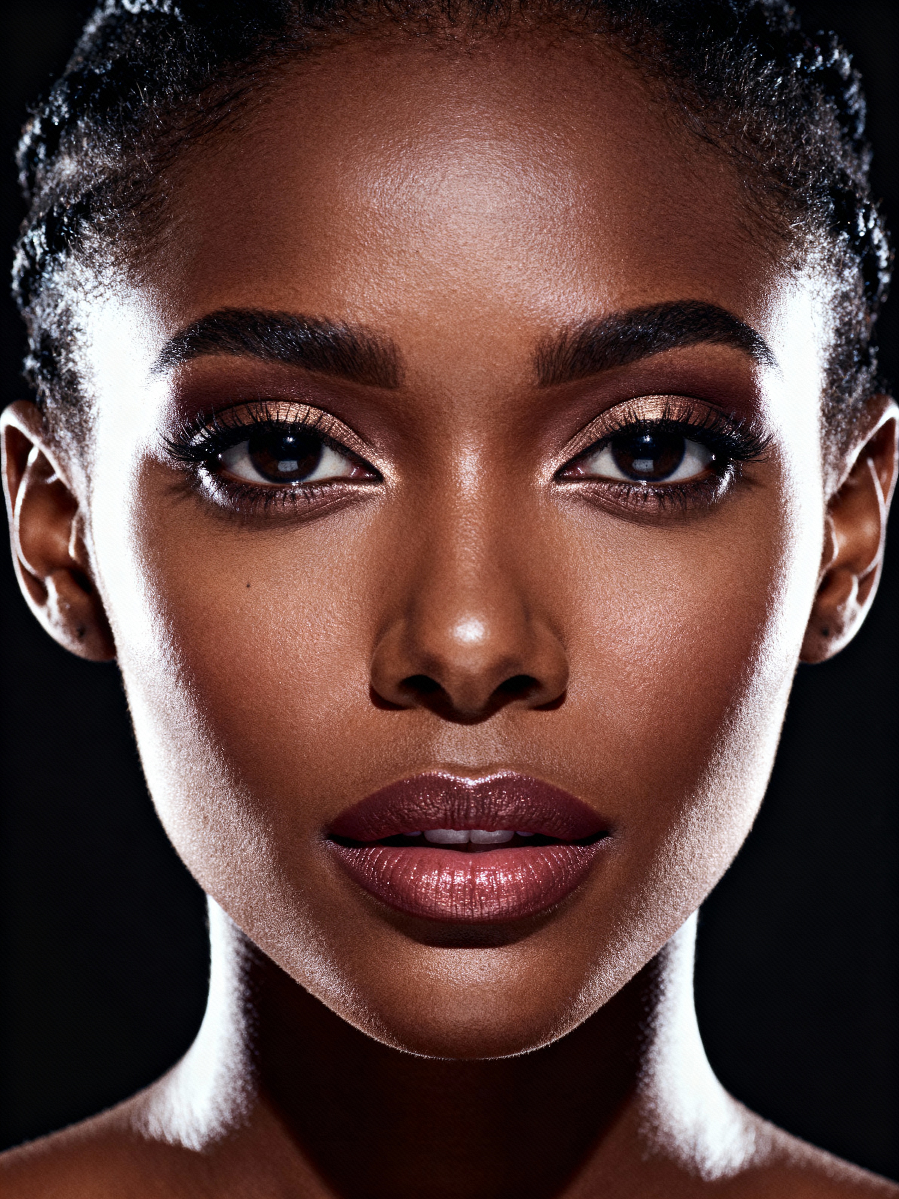 insanely beautiful model in a beauty campaign. Flawless makeup, perfect skin, elegant expression . Clean studio lighting, beauty photography.