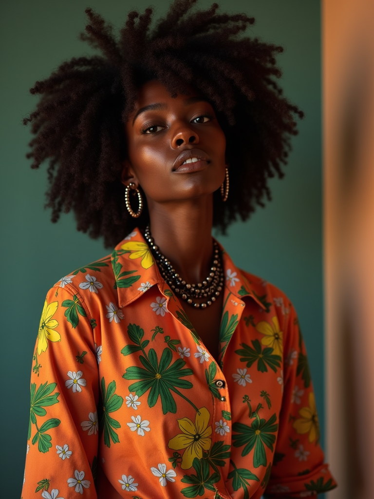 insanely beautiful model in a creative fashion editorial. Wearing artistic fashion pieces, expressive pose . Artistic lighting, fashion magazine style.