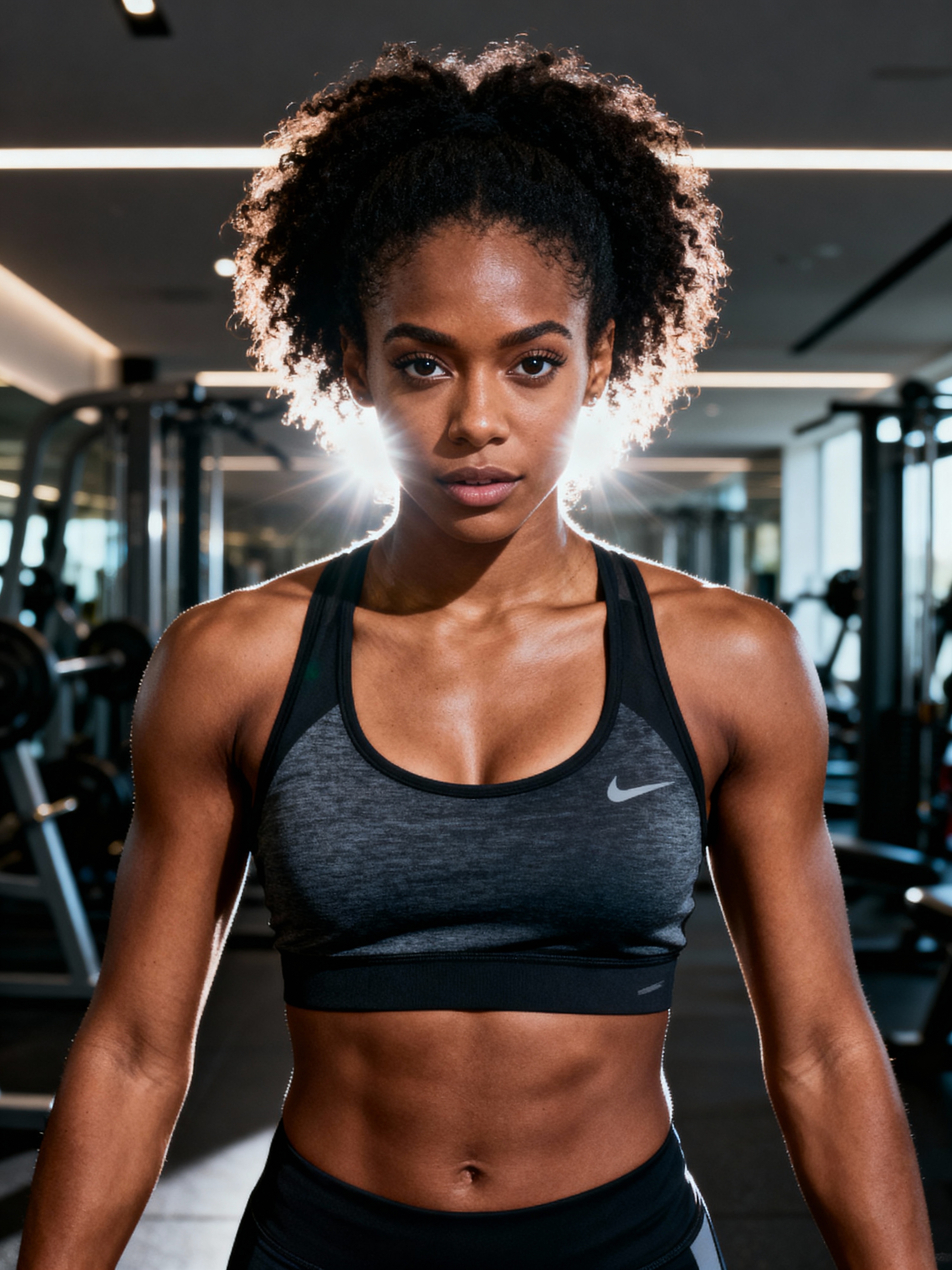 insanely beautiful model in a fitness campaign. Wearing premium activewear, athletic pose . Modern gym setting, fitness photography.