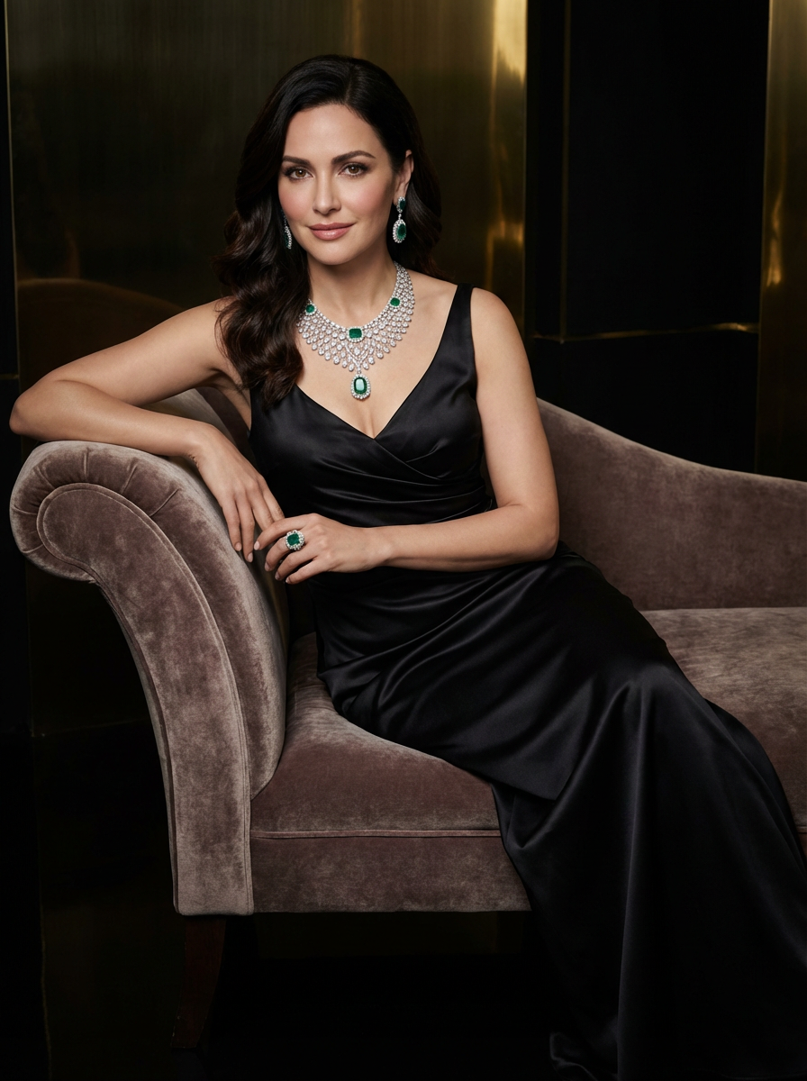 insanely beautiful model in a high-end jewelry campaign. Wearing statement jewelry pieces, elegant pose . Dramatic lighting, luxury product photography.