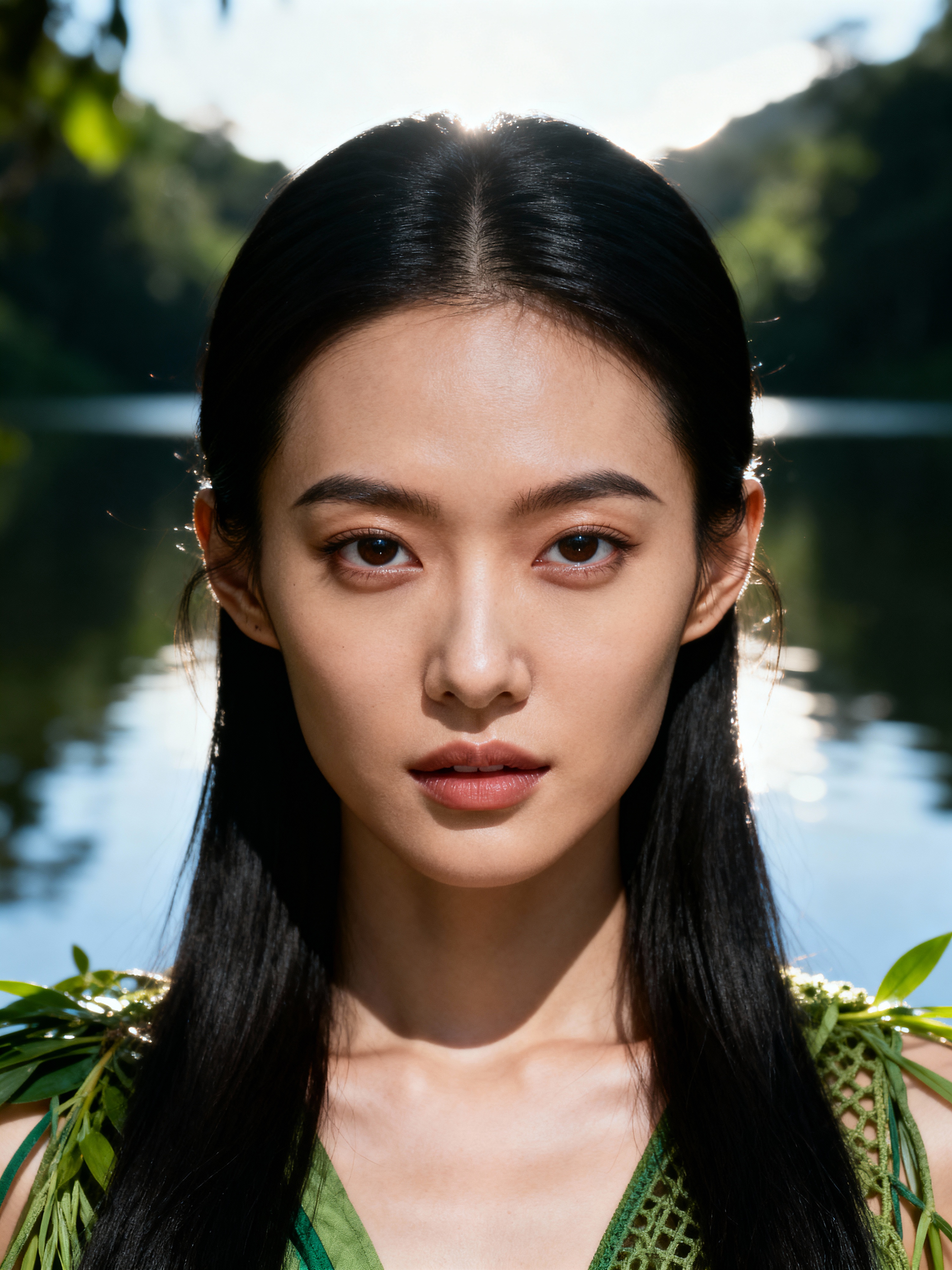 insanely beautiful model in a sustainable fashion campaign. Wearing eco-luxury pieces, conscious pose . Natural setting, eco-fashion photography.