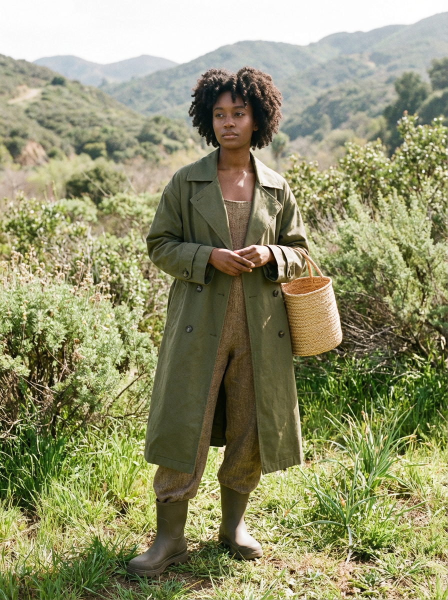 insanely beautiful model in a sustainable fashion campaign. Wearing eco-luxury pieces, conscious pose . Natural setting, eco-fashion photography.