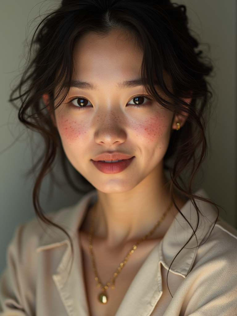 insanely beautiful model with freckles in a commercial lifestyle shoot. Wearing everyday luxury, relatable pose . Lifestyle setting, commercial photography.