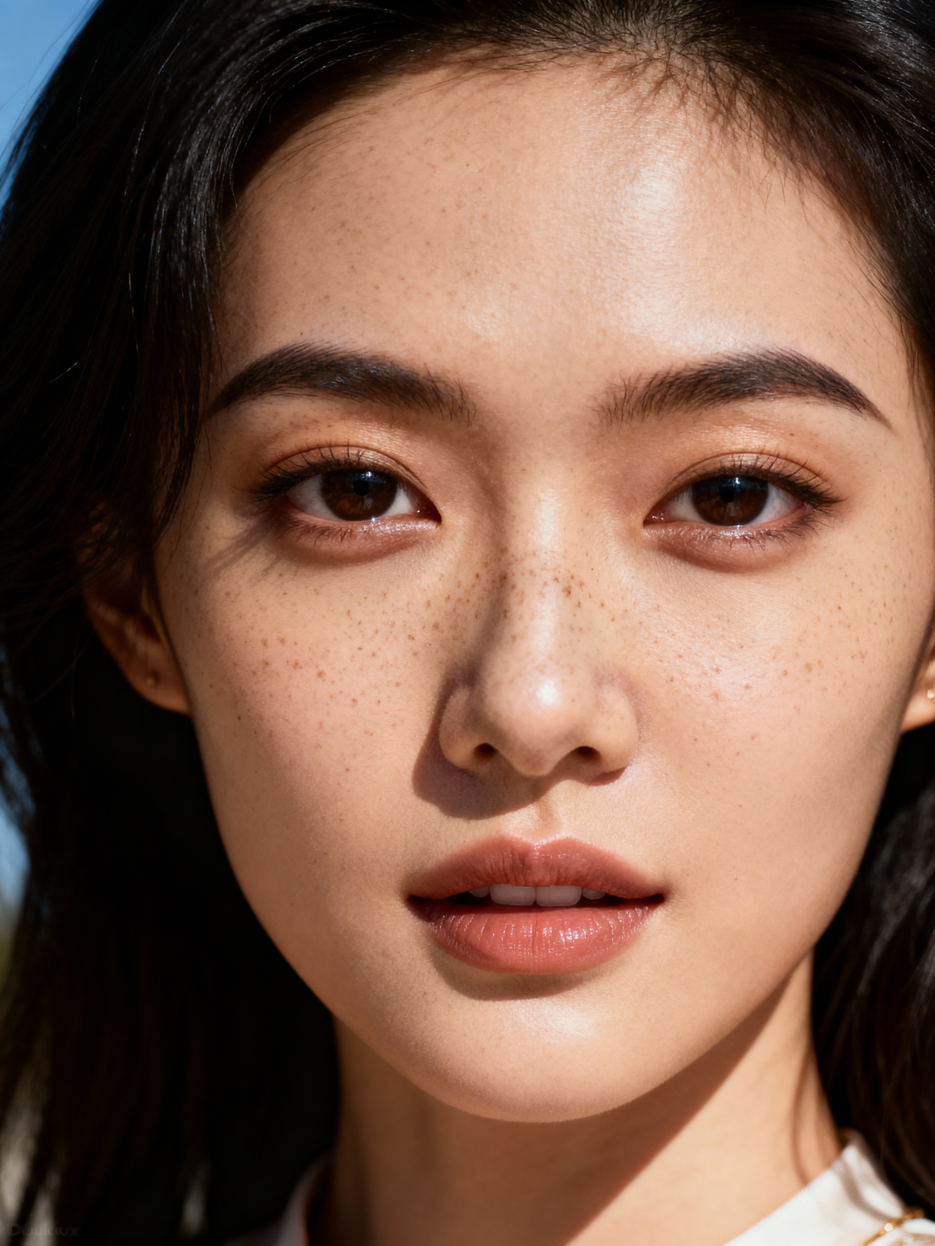 insanely beautiful model with freckles in a commercial lifestyle shoot. Wearing everyday luxury, relatable pose . Lifestyle setting, commercial photography.