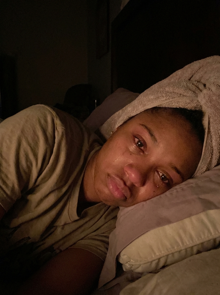 {"lighting": {"source": "Low artificial indoor light, likely from a faint room lamp or ambient night light", "quality": "Very dim, soft and subdued with gentle illumination on the face and upper body", "shadows": "Soft and subtle, minimal contrast, blending into the dark background", "direction": "From above and slightly to the side, casting gentle shadows along the jawline and under the chin"}, "background": {"context": "Intimate bedroom at night, person lying in bed with head on pillows", "setting": "Personal bedroom, cozy and dimly lit atmosphere", "elements": ["Dark, almost background with no visible details", "pillows propping up the head, soft and plush", "bedsheets partially visible around the neck and shoulders"]}, "typography": {"details": [], "text_visible": "No"}, "composition": {"framing": "Close-up vertical portrait, focused on face and upper shoulders", "perspective": "Slightly overhead and angled from the front, capturing the subject in profile view turned toward the camera", "depth_of_field": "Shallow, sharp focus on face and towel, background softly blurred", "rule_of_thirds": "Eyes and face aligned along the upper third, creating emotional balance", "subject_placement": "Centered with face slightly off to the left, drawing gaze inward"}, "color_profile": {"contrast": "Low to moderate, soft lighting emphasizing emotional subtlety", "saturation": "Very low, desaturated and monochromatic tones", "color_palette": "Cool and muted with emphasis on whites and shadows", "dominant_colors": ["Pale with subtle pink flush on cheeks and around eyes", "hair partially visible under towel", "Pure towel turban and t-shirt", "Deep black/dark gray background", "Soft from pillows and sheets"]}, "technical_specs": {"focus": "Sharp on eyes, tears, and facial contour s; soft on fabric textures", "exposure": "Slightly underexposed to enhance intimacy, face gently lit", "lens_type": "Wide-angle smartphone rear or front camera (minimal distortion)", "resolution": "High-resolution smartphone photo", "camera_type": "Smartphone camera in portrait mode, low-light optimized"}, "subject_analysis": {"eyes": {"gaze": "Half-closed or softly gazing off-camera, conveying quiet sorrow", hair, "expression": "Watery, reddened, with tears pooling and tracing down cheeks, deep emotional vulnerability"}, "face": {"shape": "Soft oval", "makeup": "Minimal natural look, no visible makeup, skin shows natural redness and gloss from tears", "complexion": "Fair, slightly flushed on cheeks and nose, moist and glistening from crying", "expression": "Subtle pout on lips, downturned mouth, raw sadness and exhaustion"}, "hair": {hair, "style": "straight hair wrapped in a loose towel turban, no loose strands visible", "length": "Medium to long, concealed under towel"}, "pose": "Lying on side in bed, head resting on pillow, face turned slightly toward camera, relaxed and weary", "clothing": {"top": "Loose-fitting short-sleeve t-shirt, soft and slightly wrinkled", "bottom": "Not visible"}, "age_group": "Late teens to early 20s", "accessories": ["towel turban wrapped around head"], "subject_type": "young model, early 20s", "hands_gestures": "Not visible in frame"}, "artistic_elements": {"mood": "Poignant, introspective, tender sadness, post-shower vulnerability", "style": "Candid, serene low-light portrait, authentic and unretouched emotional depth", "texture": "Soft towel fabric folds, plush pillow texture, dewy skin with tear trails, subtle fabric creases on shirt"}, "generation_parameters": {"seed": "Random", "model": "Photorealistic low-light portrait", "prompt": "Vertical 9:16 smartphone portrait of a young model lying on her side in a dark bedroom at night, head resting on a pillow, looking softly toward the camera with a sad, vulnerable expression. Visible tears on her cheeks, reddened watery light eyes half-closed, subtle pout on lips. hair wrapped in a loose towel turban. Wearing a loose t-shirt. Very dim soft lighting with gentle shadows, dark background with pillows and sheets. Raw, emotional, intimate, unfiltered mood. Natural with flush from crying, no makeup. Authentic low-light smartphone photo aesthetic, serene and melancholic.", "negative_prompt": "bright lighting, outdoor scene, heavy makeup, smiling, energetic pose, jewelry, accessories beyond towel, harsh shadows, high contrast, filtered effects, overexposed whites, multiple subjects, dynamic angles, text or overlays"}, "aspect_ratio": "9:16"}