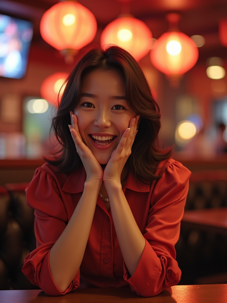 lively feminine model cheering on a sports game at a cozy bar