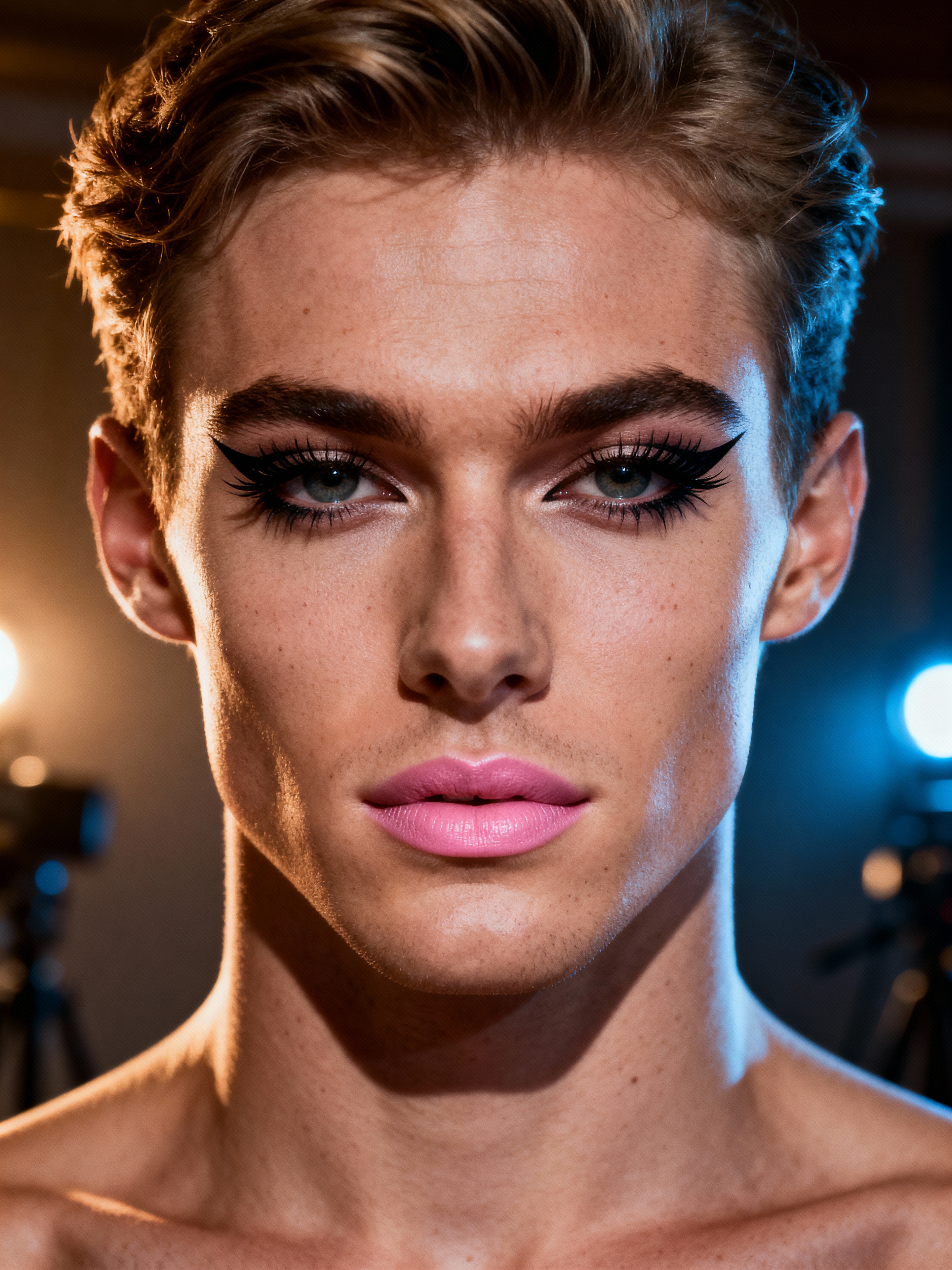 make up ideas for model. fake eyelashes, perfect cat eyeliner, light pink lipstick