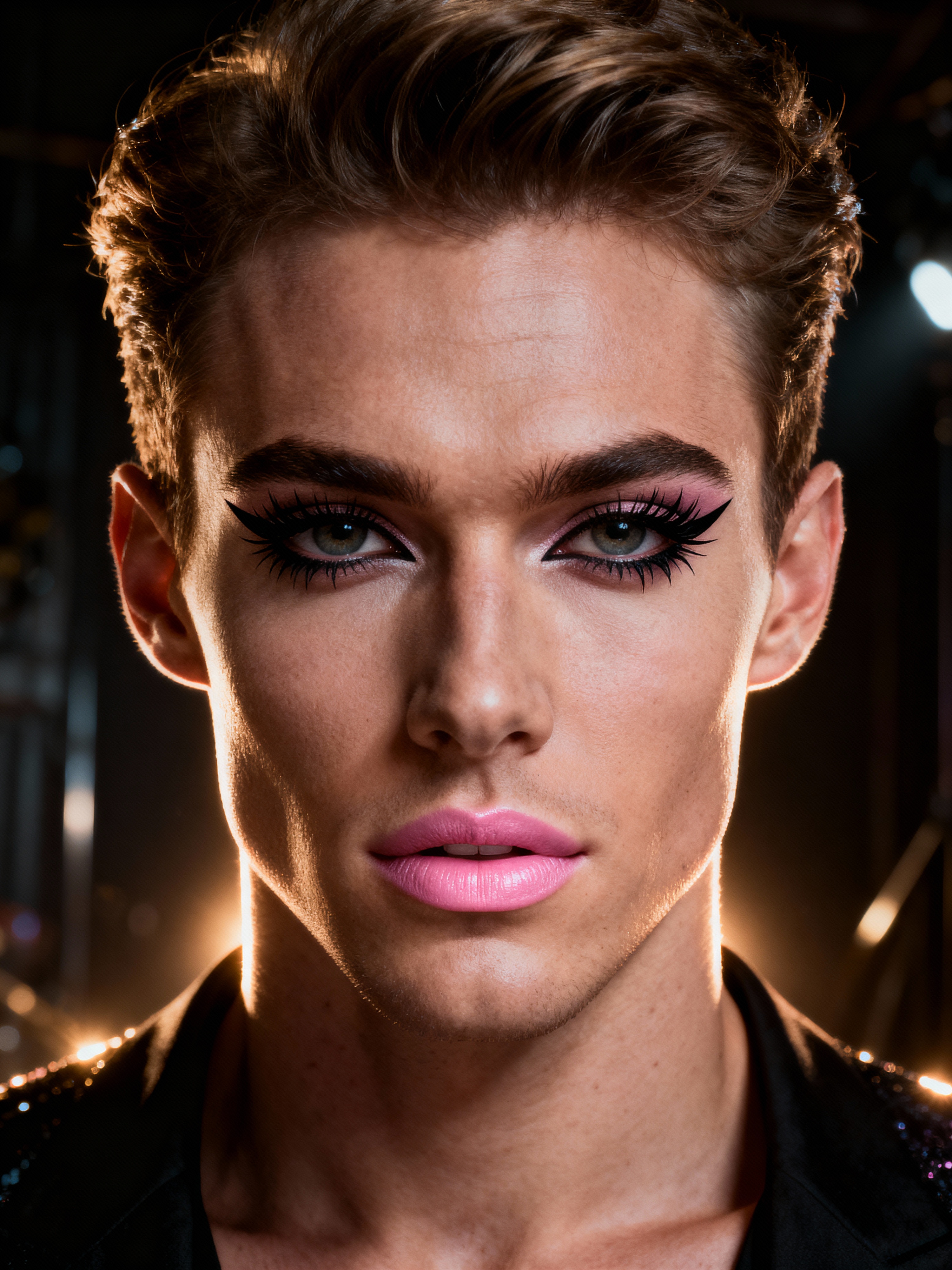 make up ideas for model. fake eyelashes, perfect cat eyeliner, light pink lipstick