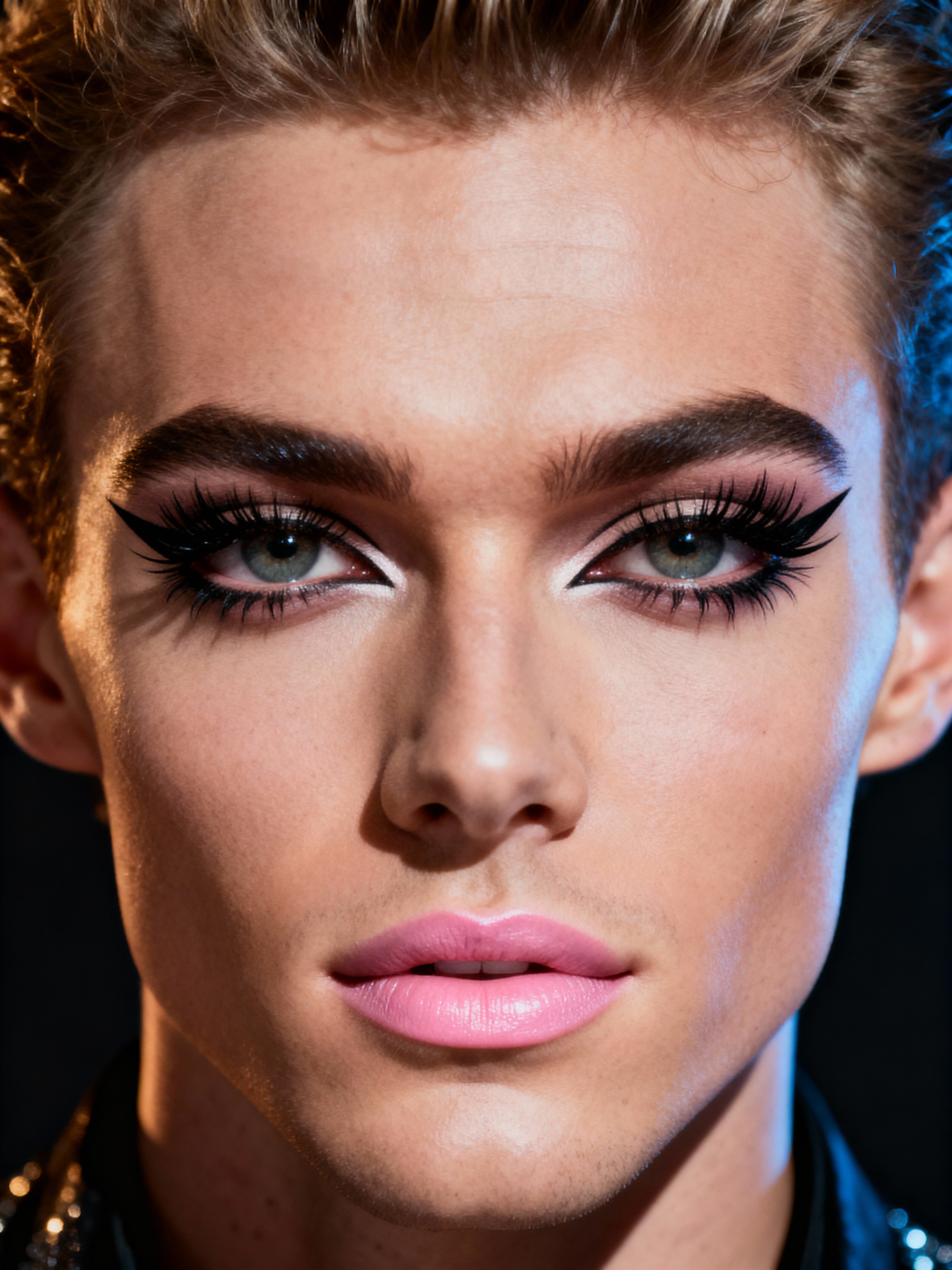 make up ideas for model. fake eyelashes, perfect cat eyeliner, light pink lipstick