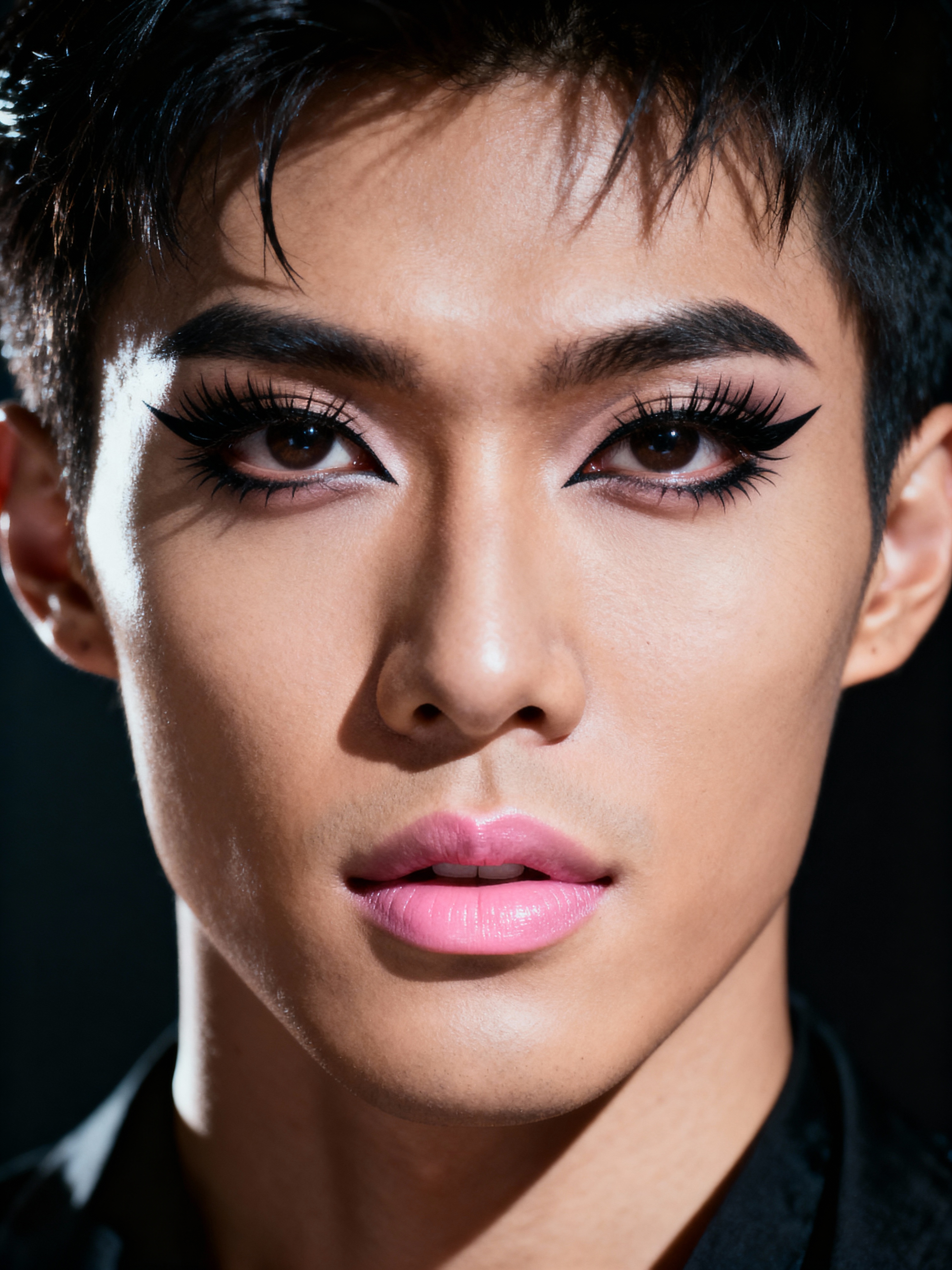 make up ideas for model. fake eyelashes, perfect cat eyeliner, light pink lipstick