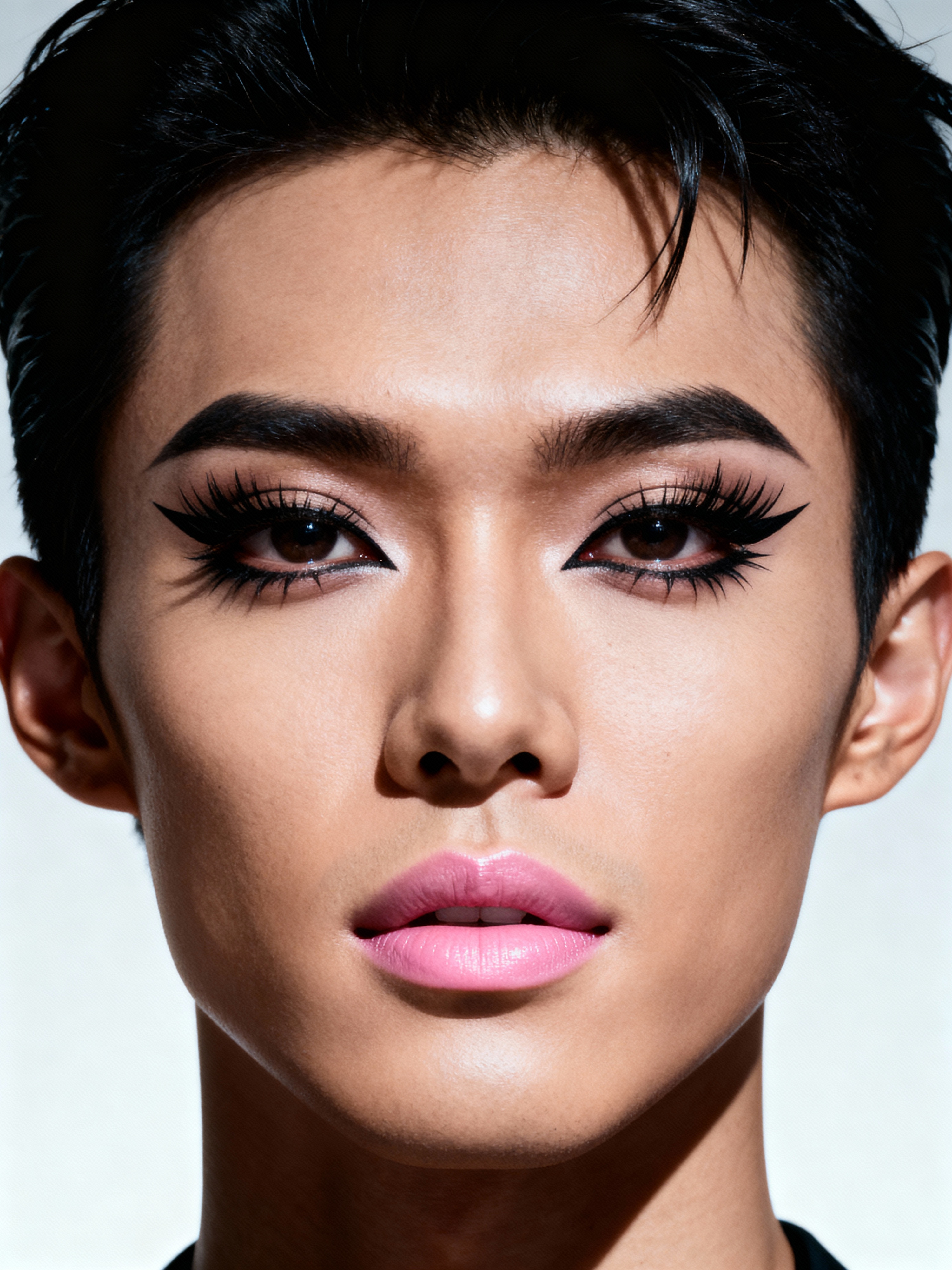 make up ideas for model. fake eyelashes, perfect cat eyeliner, light pink lipstick