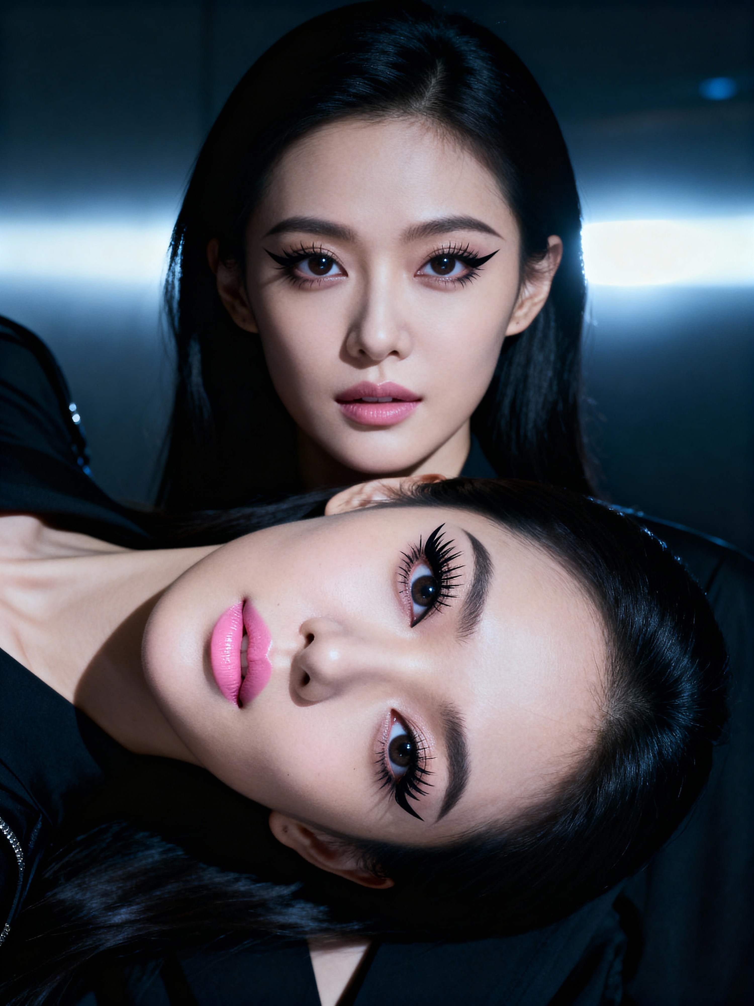 make up ideas for model. fake eyelashes, perfect cat eyeliner, light pink lipstick