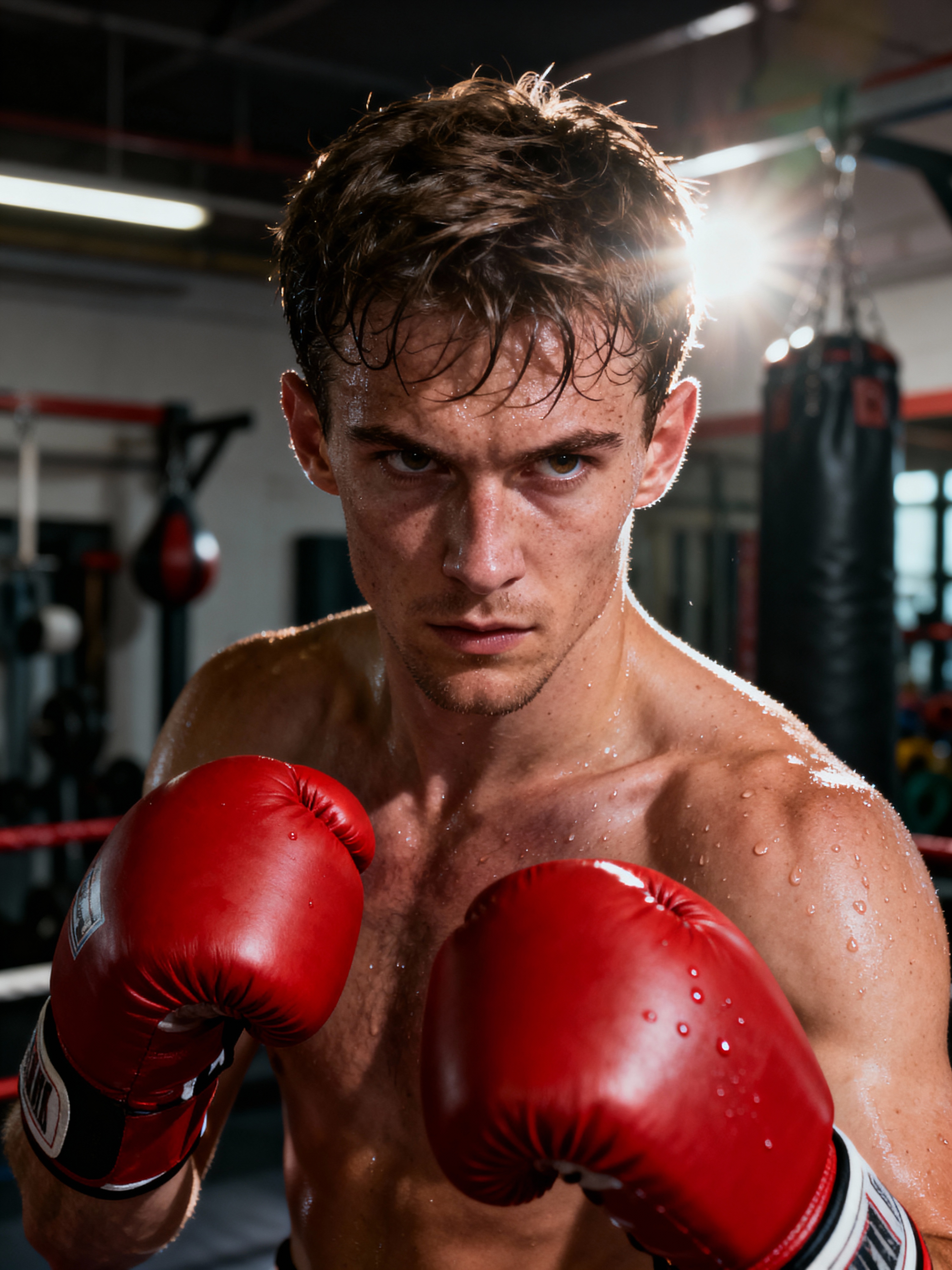 model as a Boxer wearing Boxing Gloves