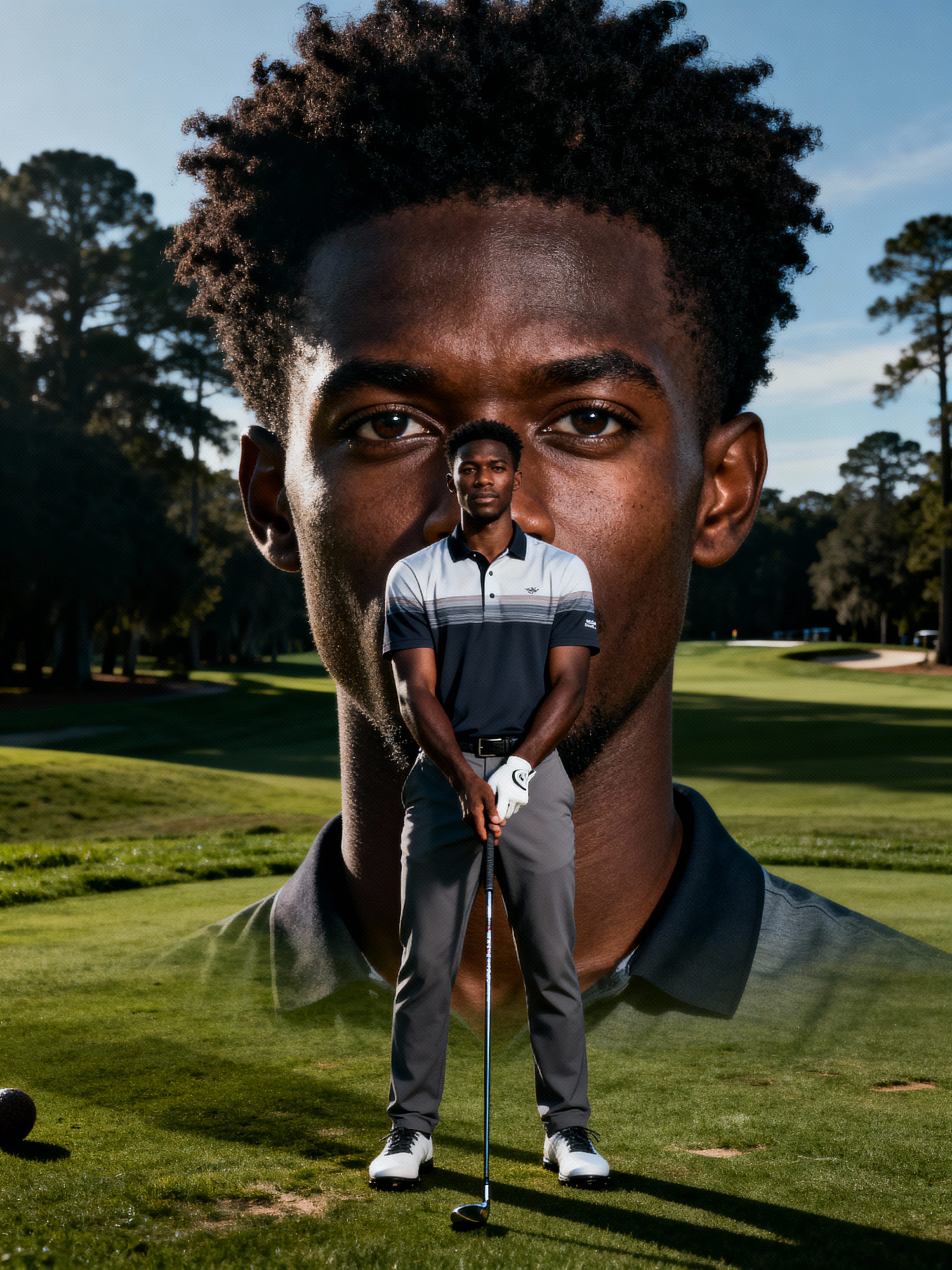 model as a Golfer on the Golf Course holding Golf Club wearing golf shorts or golf skirt, a collared shirt, golf pants