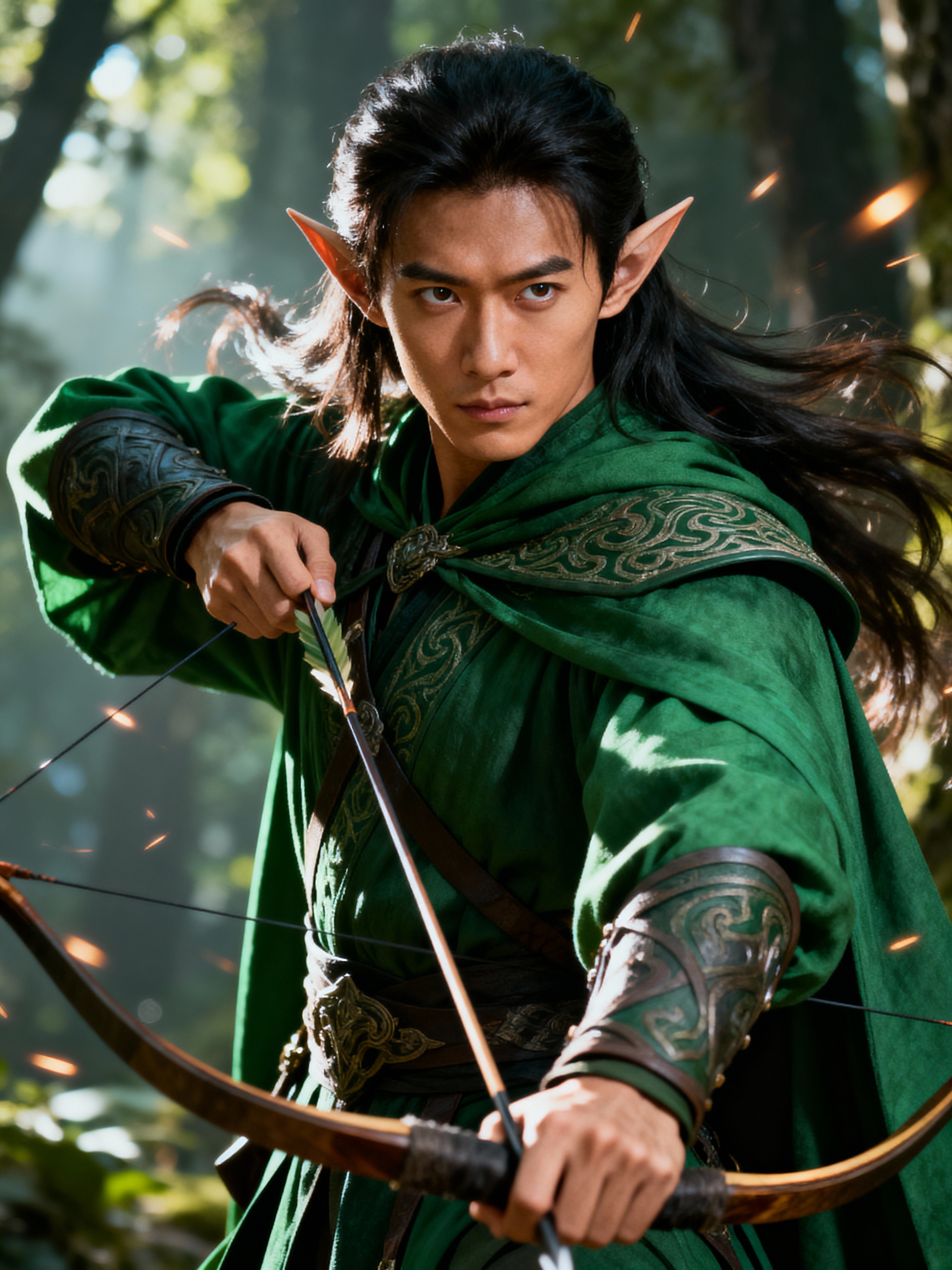 model as a Medieval Elf Archer Warrior in Green Robe