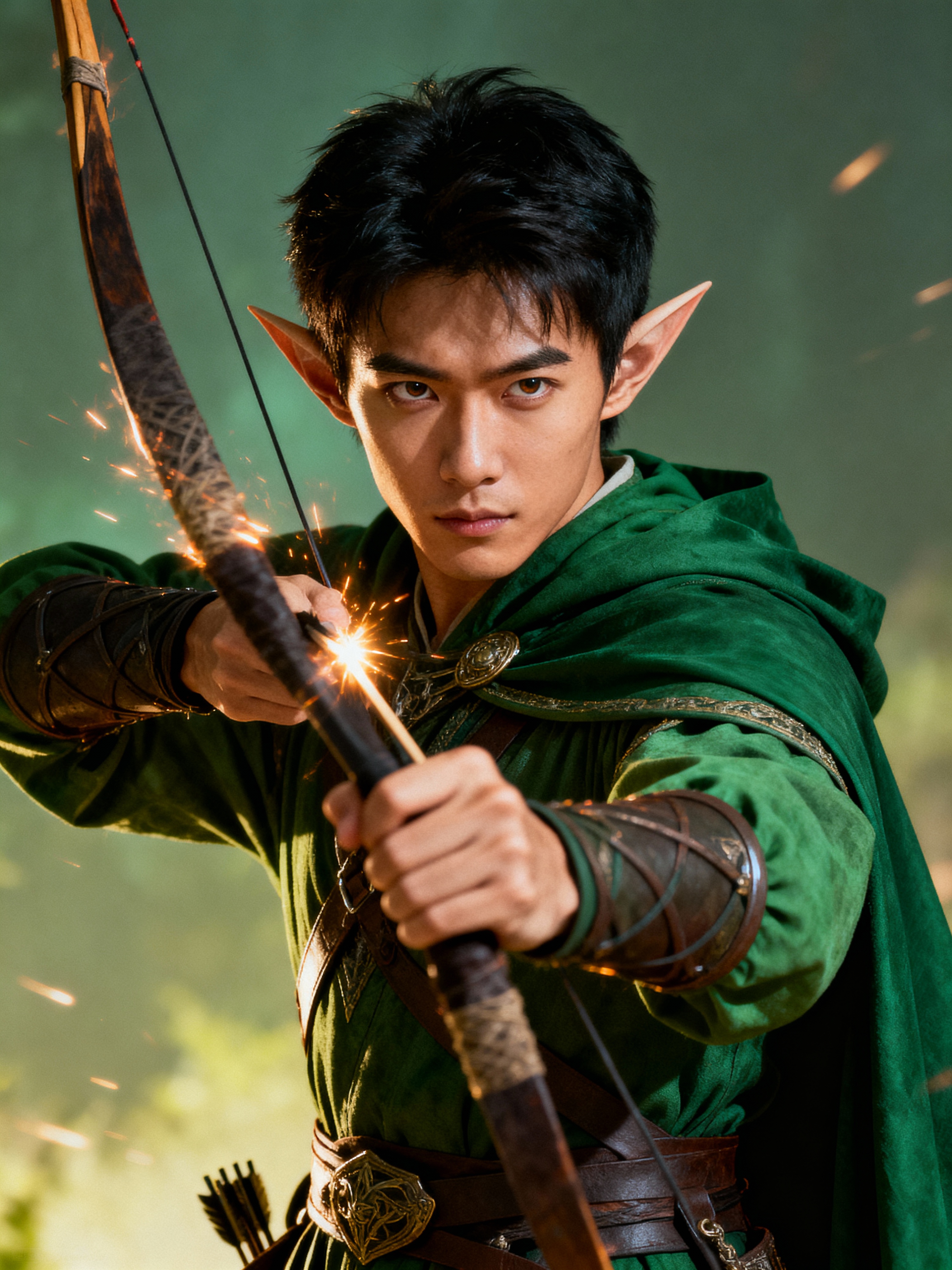 model as a Medieval Elf Archer Warrior in Green Robe