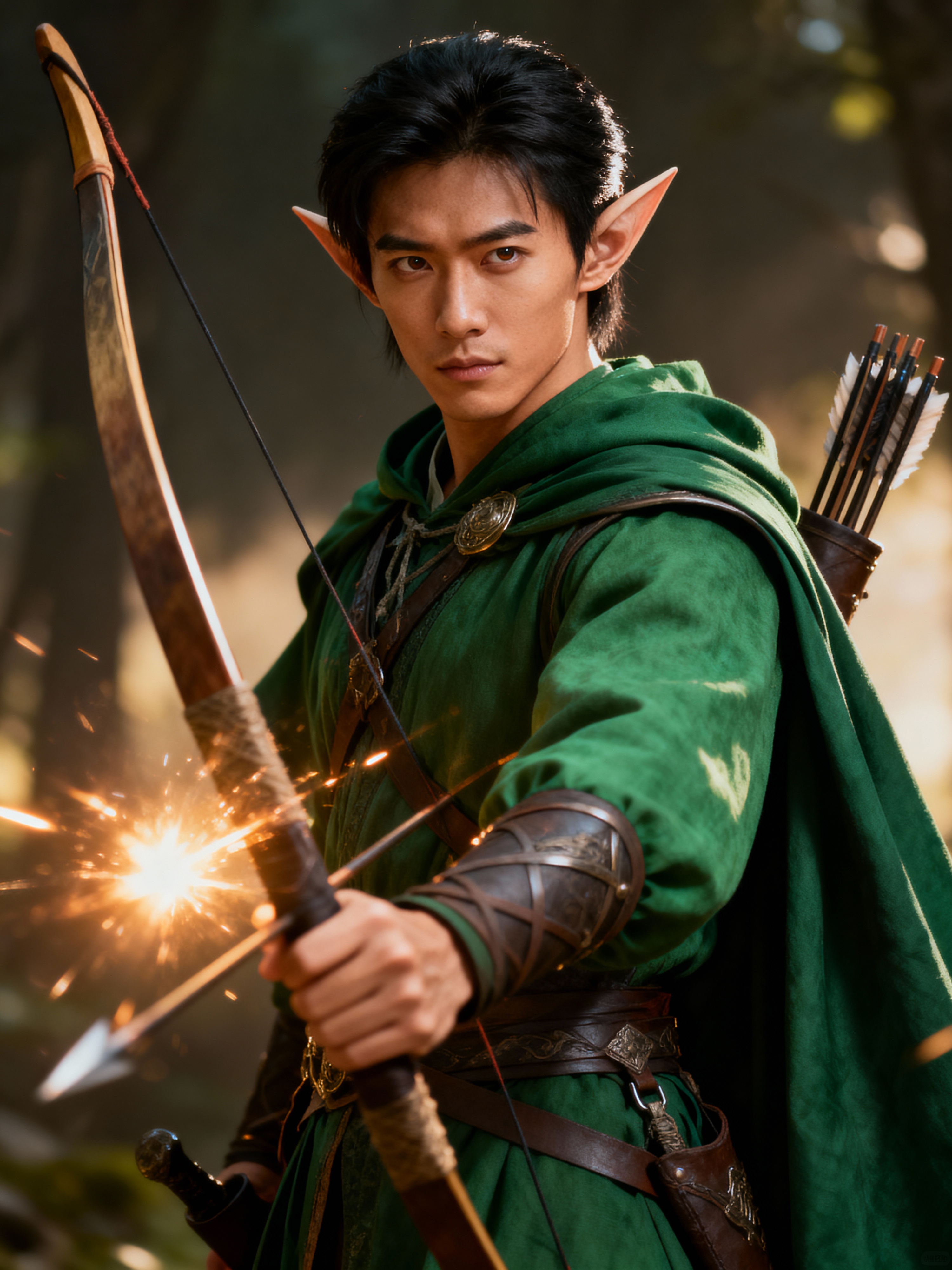 model as a Medieval Elf Archer Warrior in Green Robe