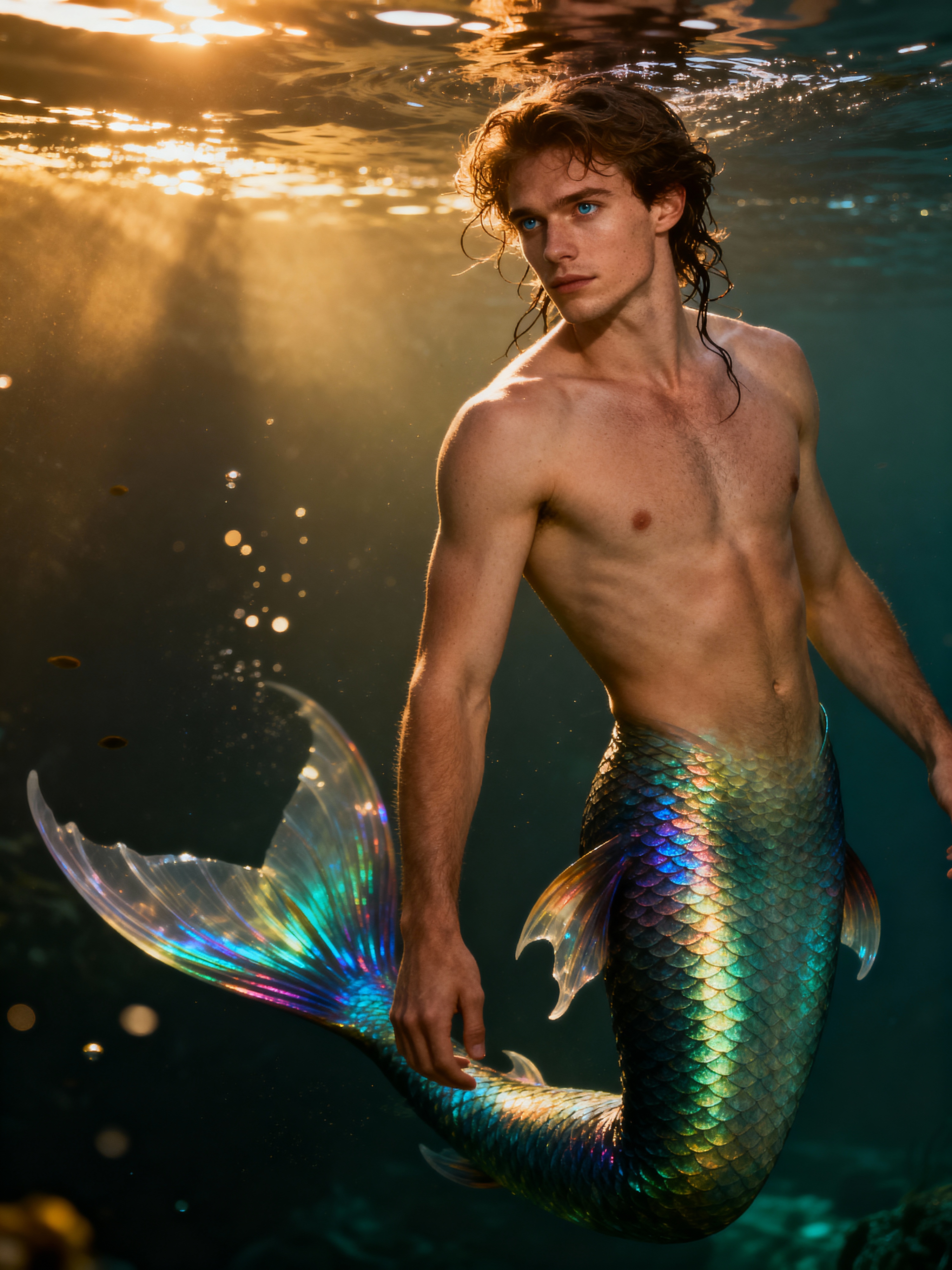 model as a Mermaid the head and upper body of a human and the tail of a fish