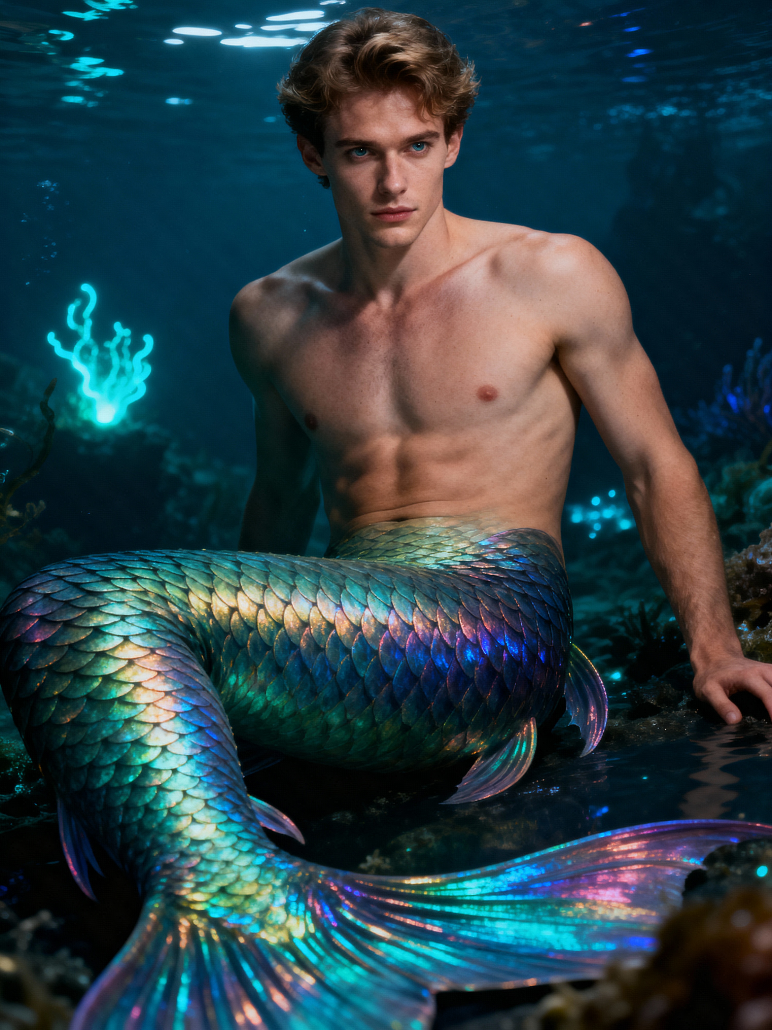 model as a Mermaid the head and upper body of a human and the tail of a fish