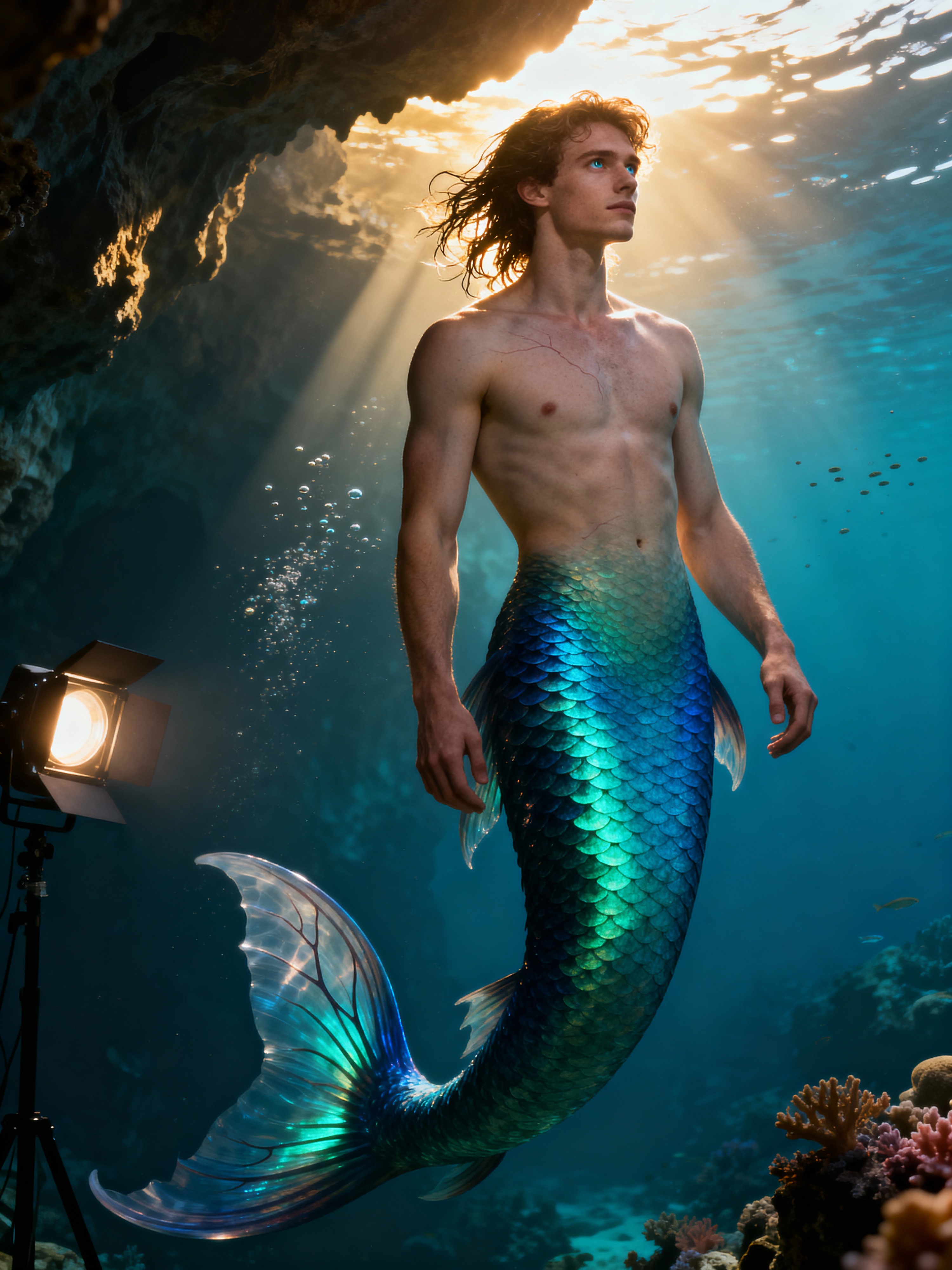 model as a Mermaid the head and upper body of a human and the tail of a fish