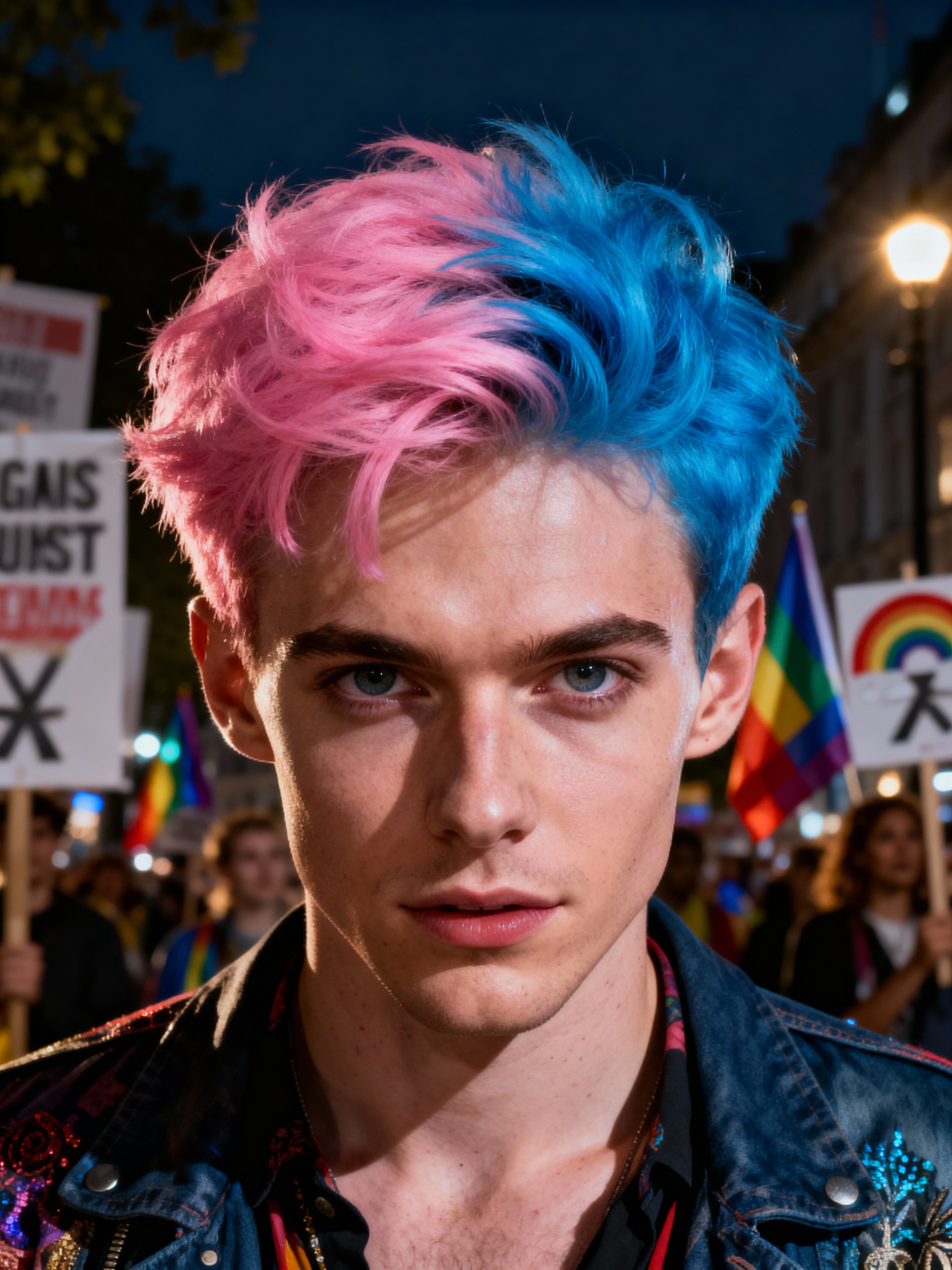model as a progressive LGBTQ activist feminist with pink or blue hair