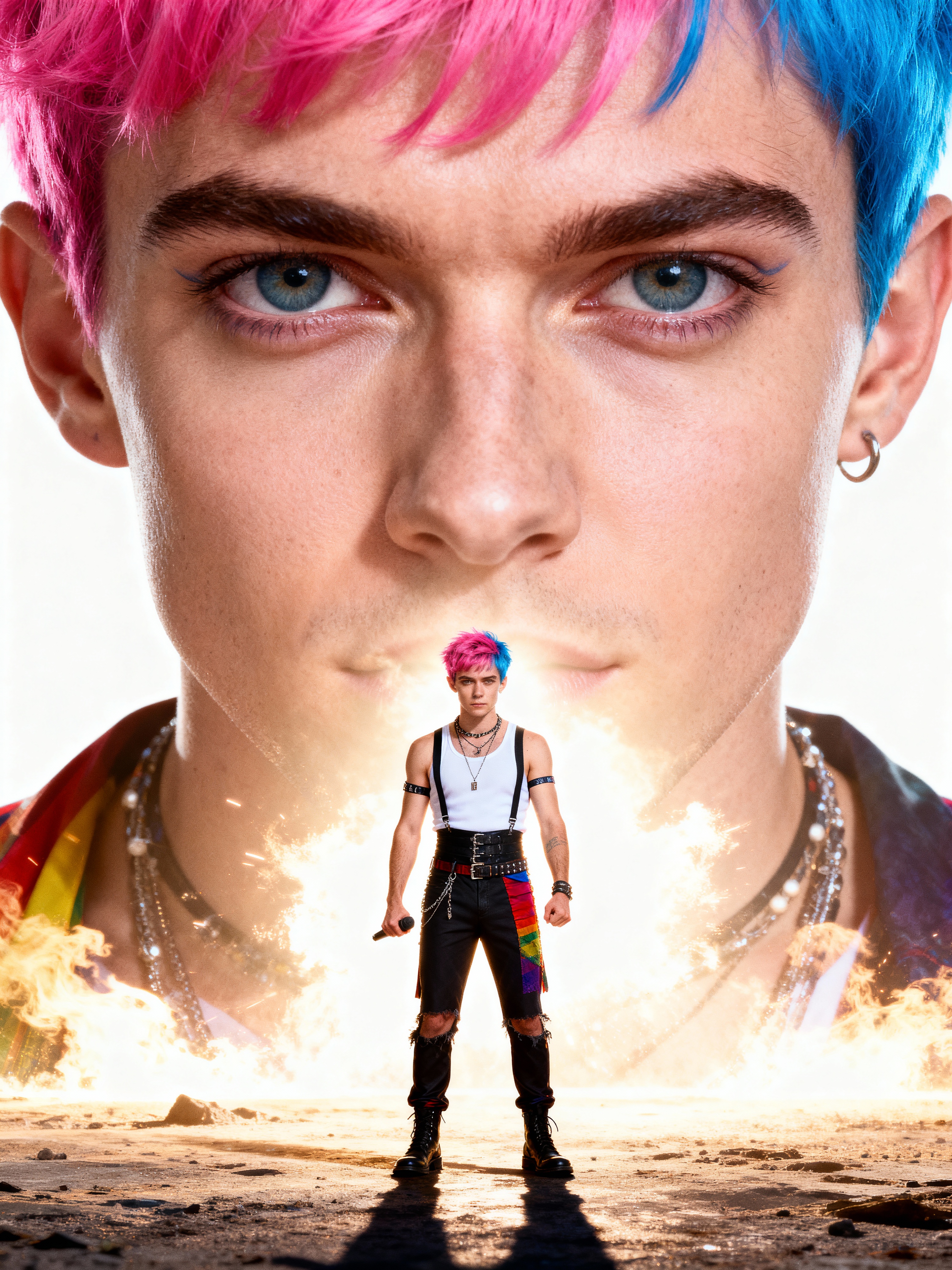 model as a progressive LGBTQ activist feminist with pink or blue hair