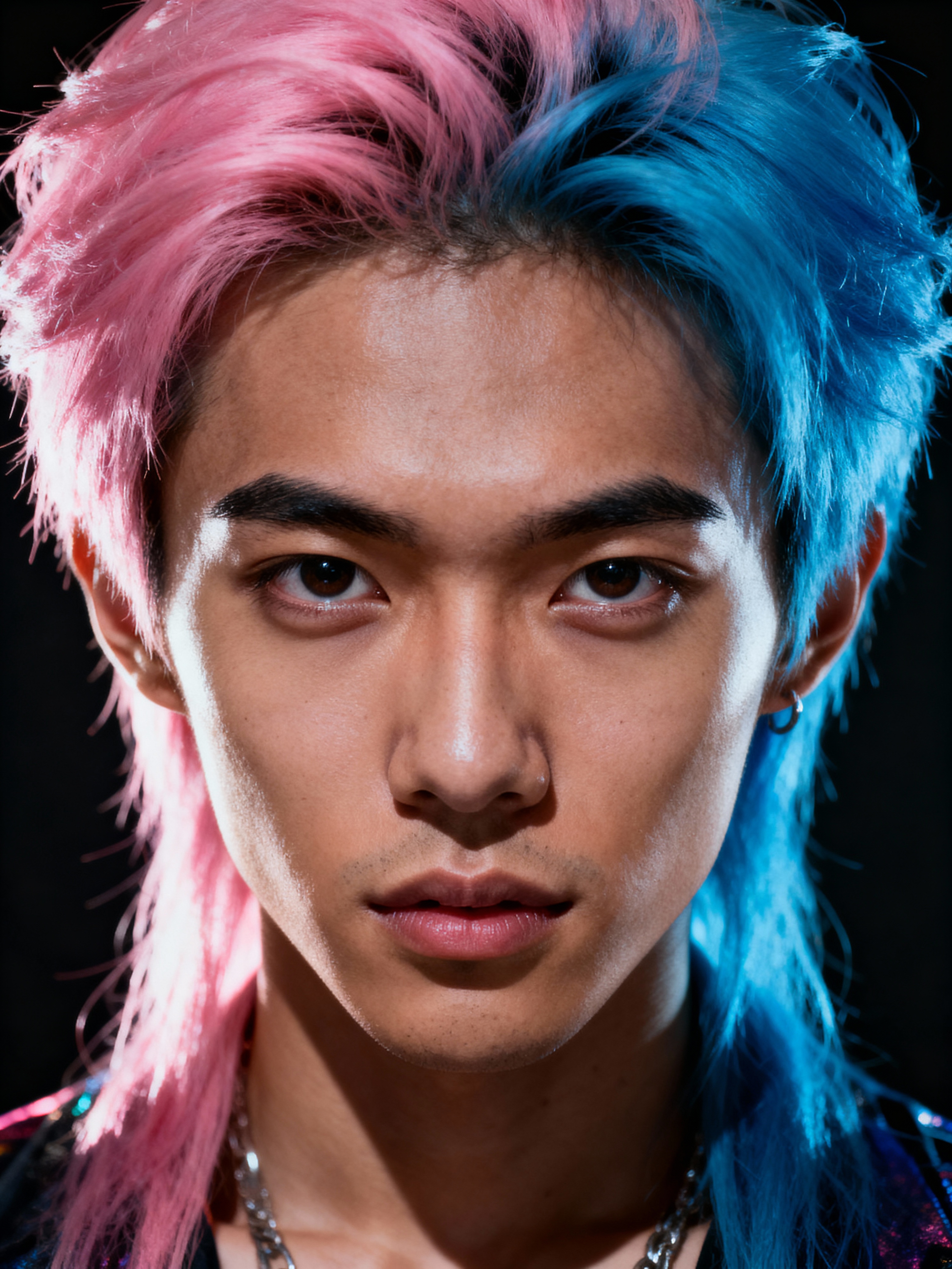 model as a progressive LGBTQ activist feminist with pink or blue hair