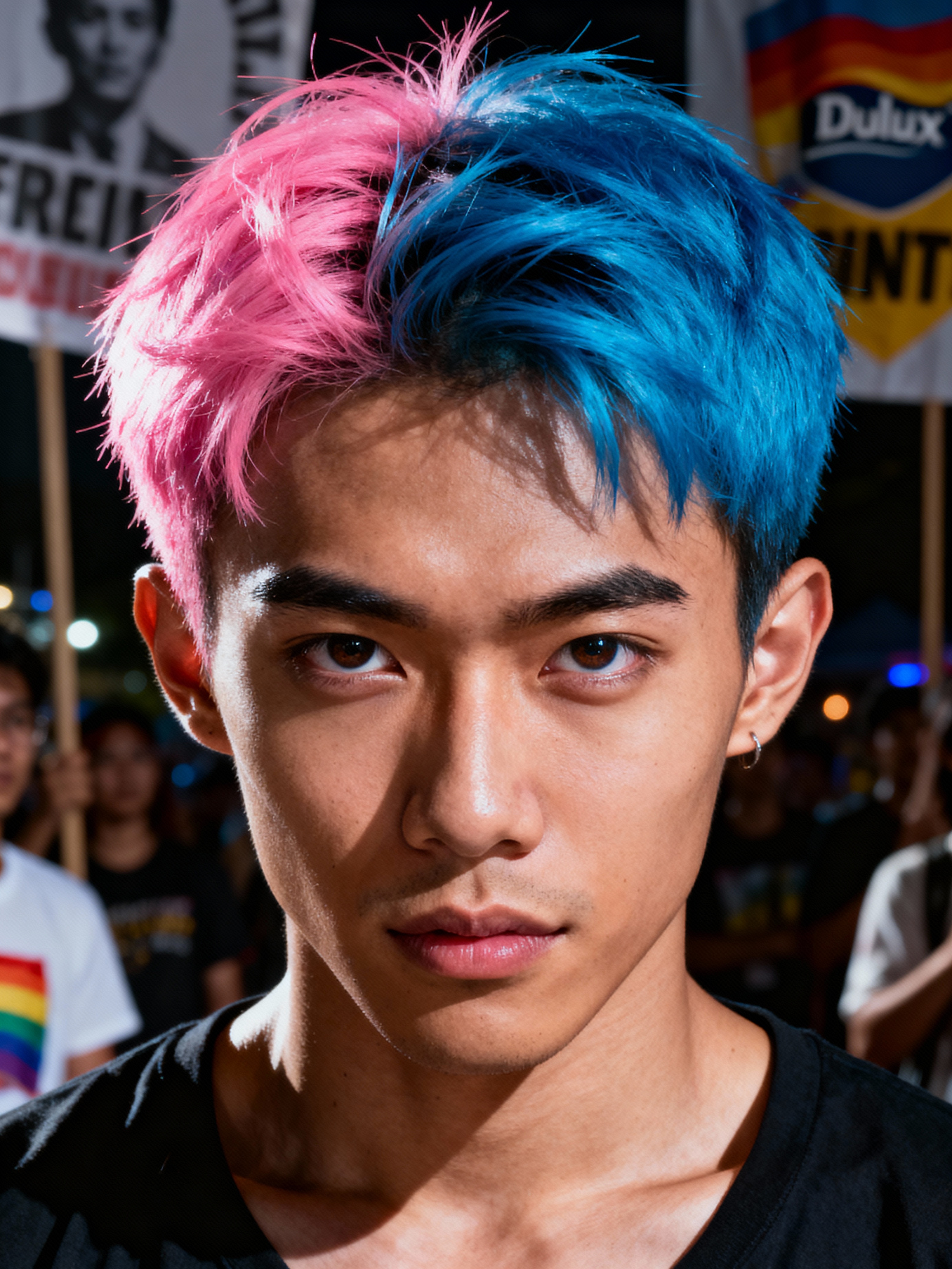 model as a progressive LGBTQ activist feminist with pink or blue hair