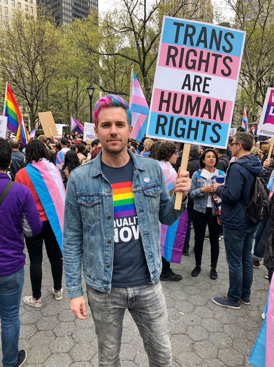 model as a progressive LGBTQ activist feminist with pink or blue hair