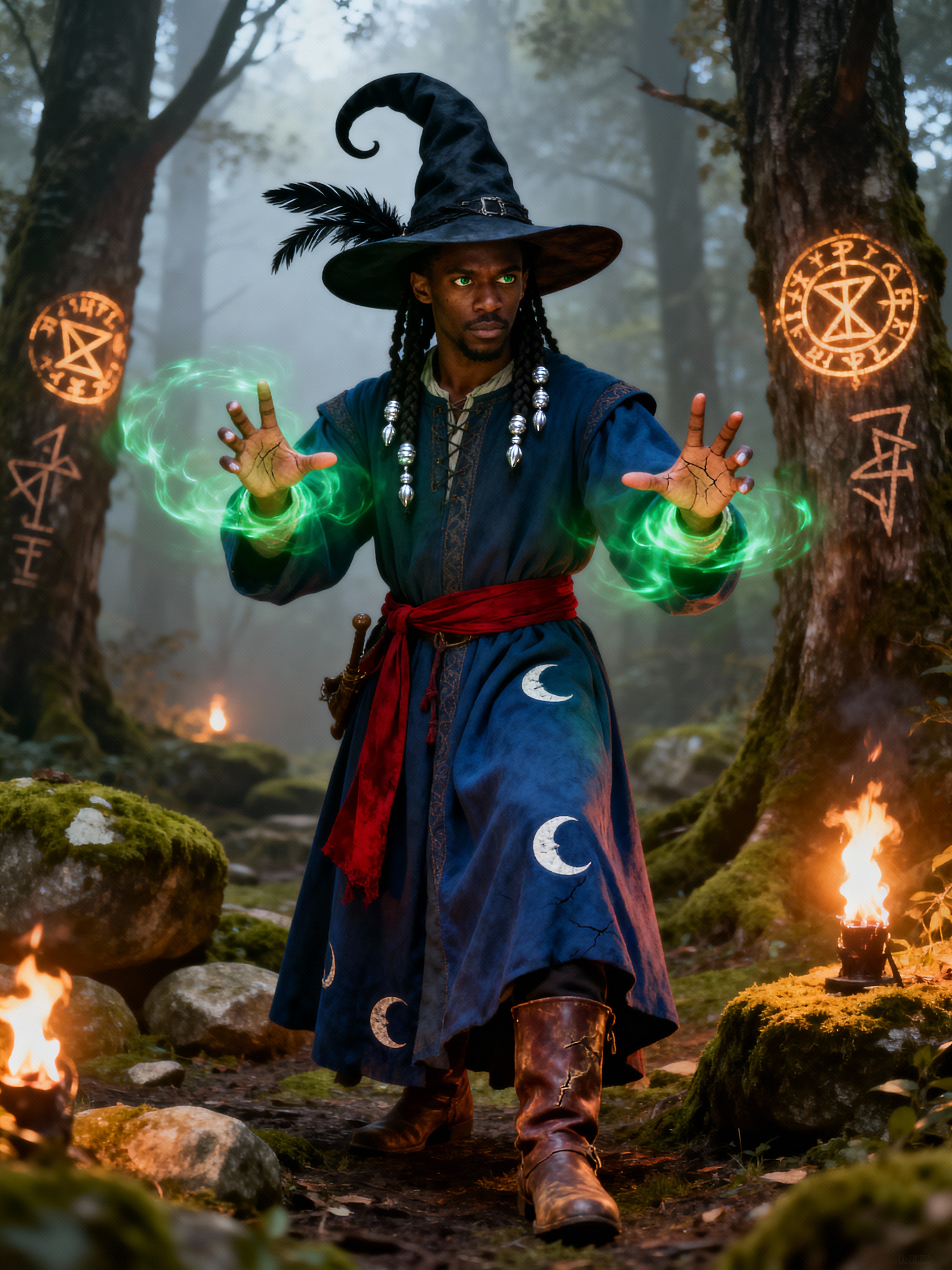 model as a Witch with a Alewife witch hat in the 14th century doing withcraft