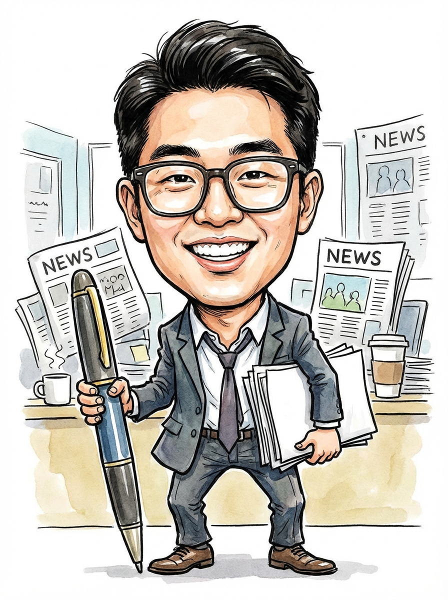 model as caricature, exaggerated features, humorous portrait, editorial cartoon style