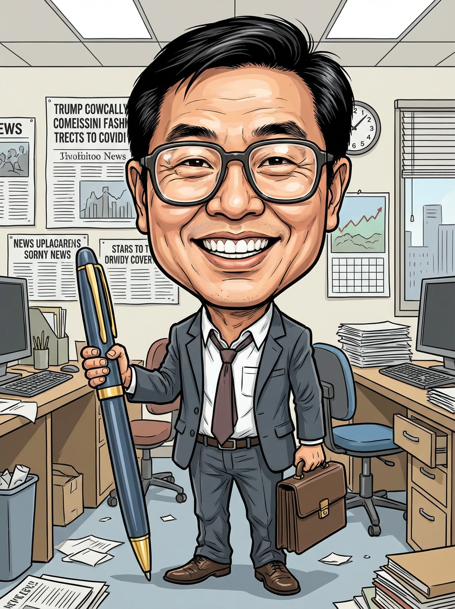 model as caricature, exaggerated features, humorous portrait, editorial cartoon style