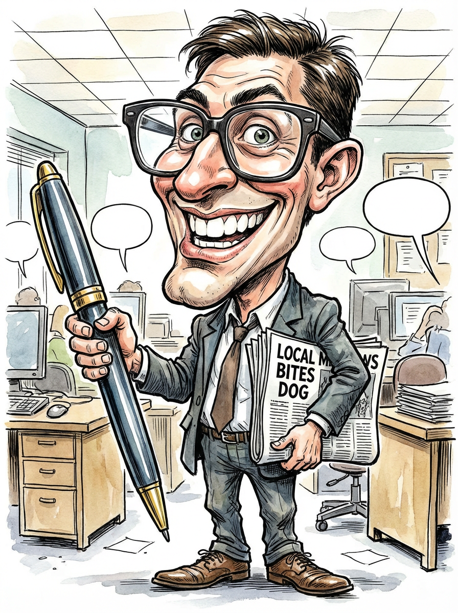 model as caricature, exaggerated features, humorous portrait, editorial cartoon style