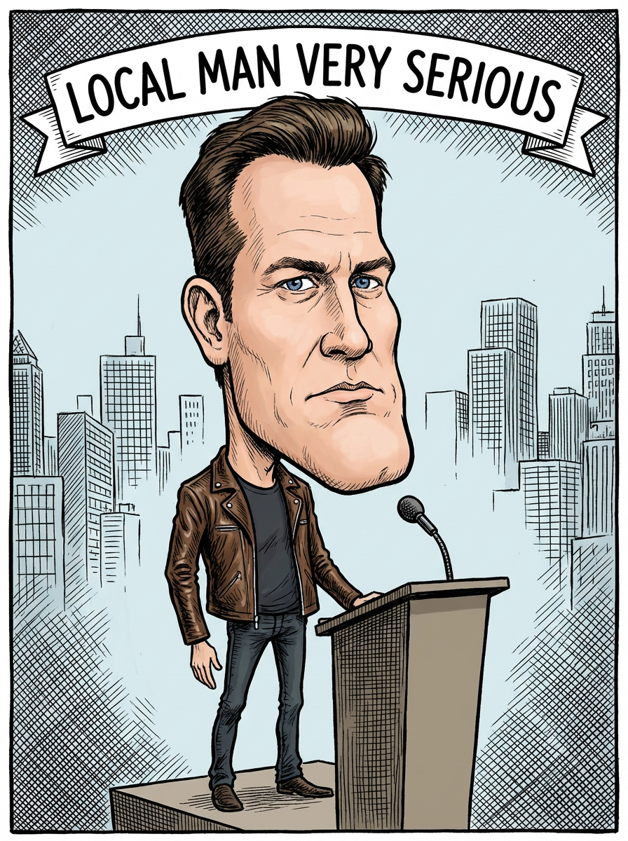 model as caricature, exaggerated features, humorous portrait, editorial cartoon style