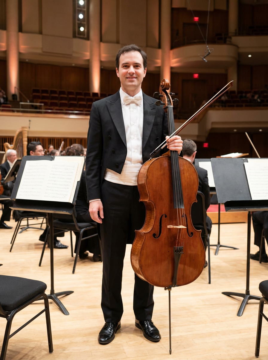 model as classical musician, formal concert attire, elegant sophisticated pose, concert hall background