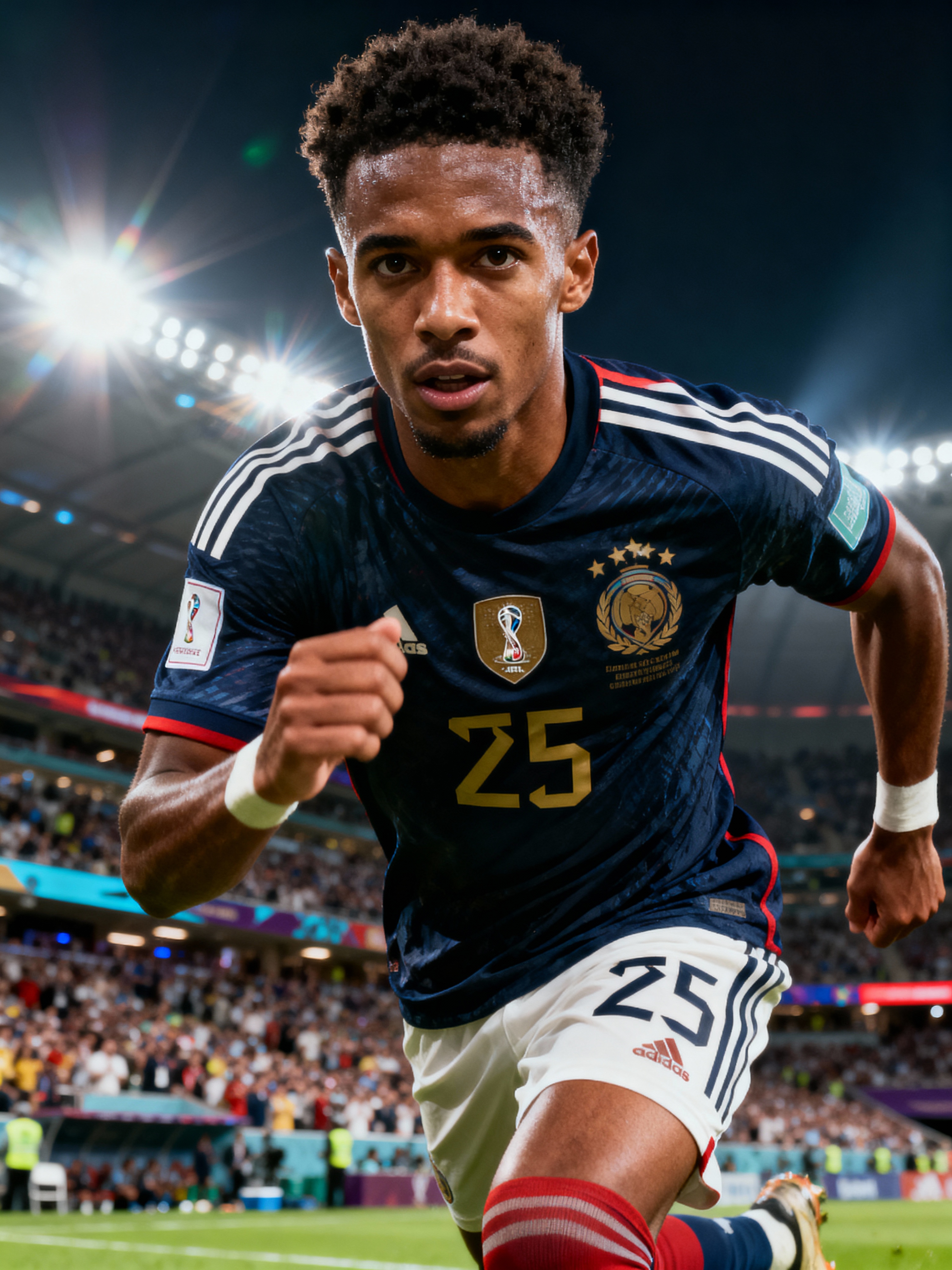 model as Football Player in the FIFA World Cup playing in a Football Match