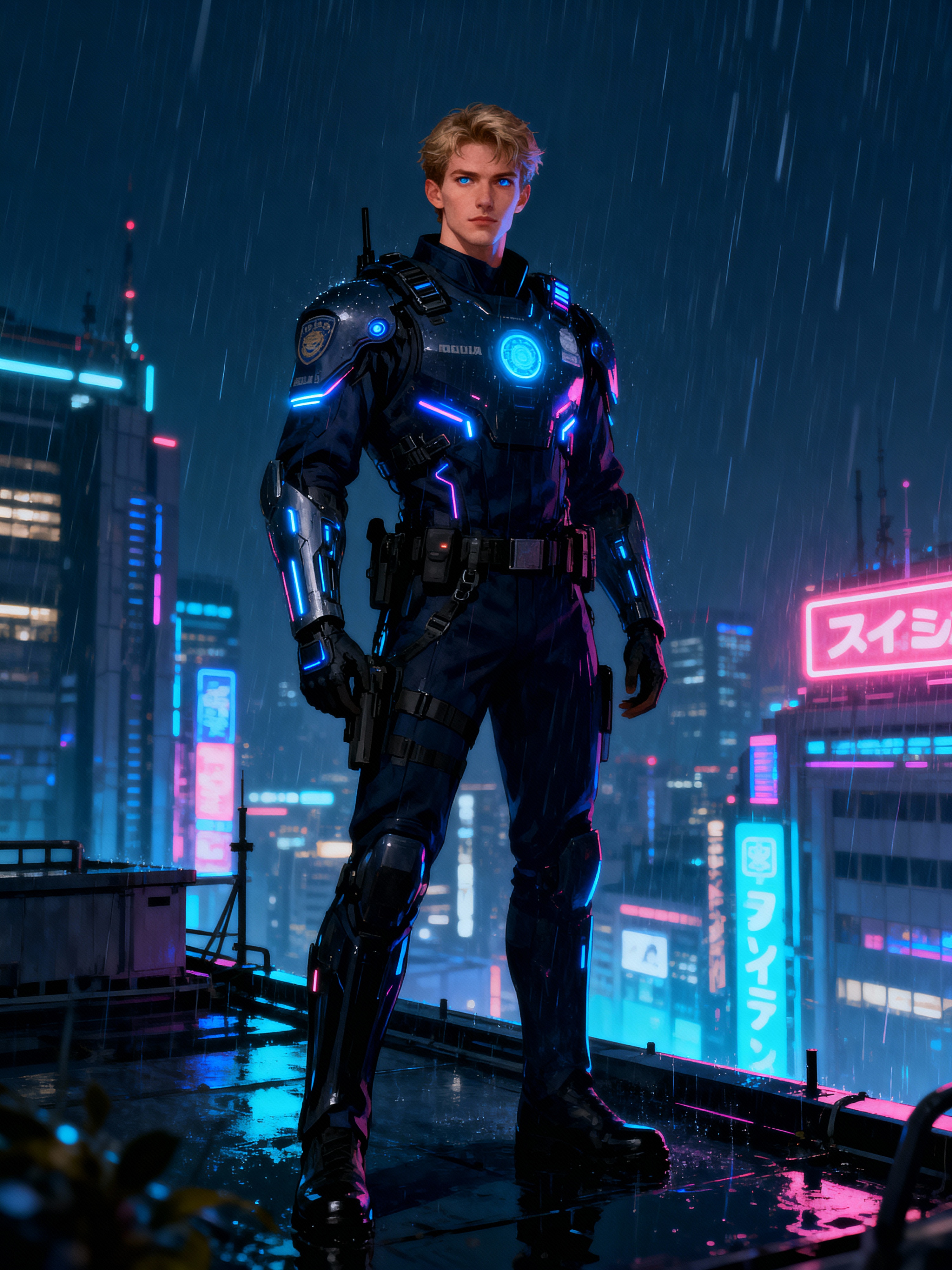 model as futuristic beautiful cyberpunk police officer, in heavy rainning futuristic tokyo rooftop cyberpunk night, ssci-fi, fantasy, intricate, very very beautiful, elegant, neon light, highly detailed, digital painting, artstation, concept art, soft light, hdri, smooth, sharp focus, illustration, art by tian zi and craig mullins and wlop and alphonse mucha
