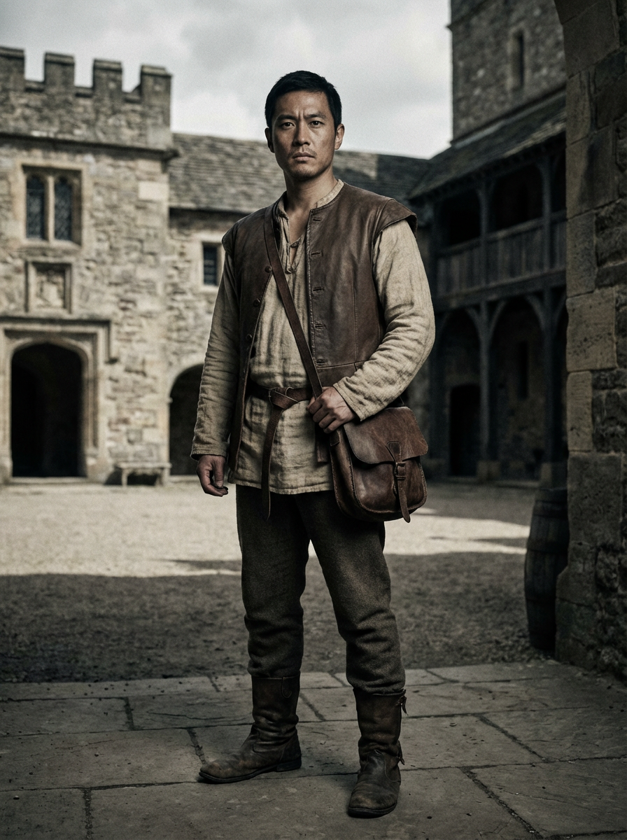 model as historical fiction character, period-appropriate styling, vintage aesthetic, dramatic composition