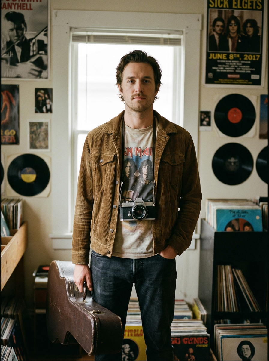 model as indie artist, authentic raw aesthetic, vintage styling, lo-fi artistic composition