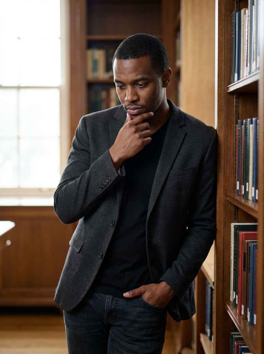 model as memoir author photo, thoughtful expression, professional yet personal, elegant simple background