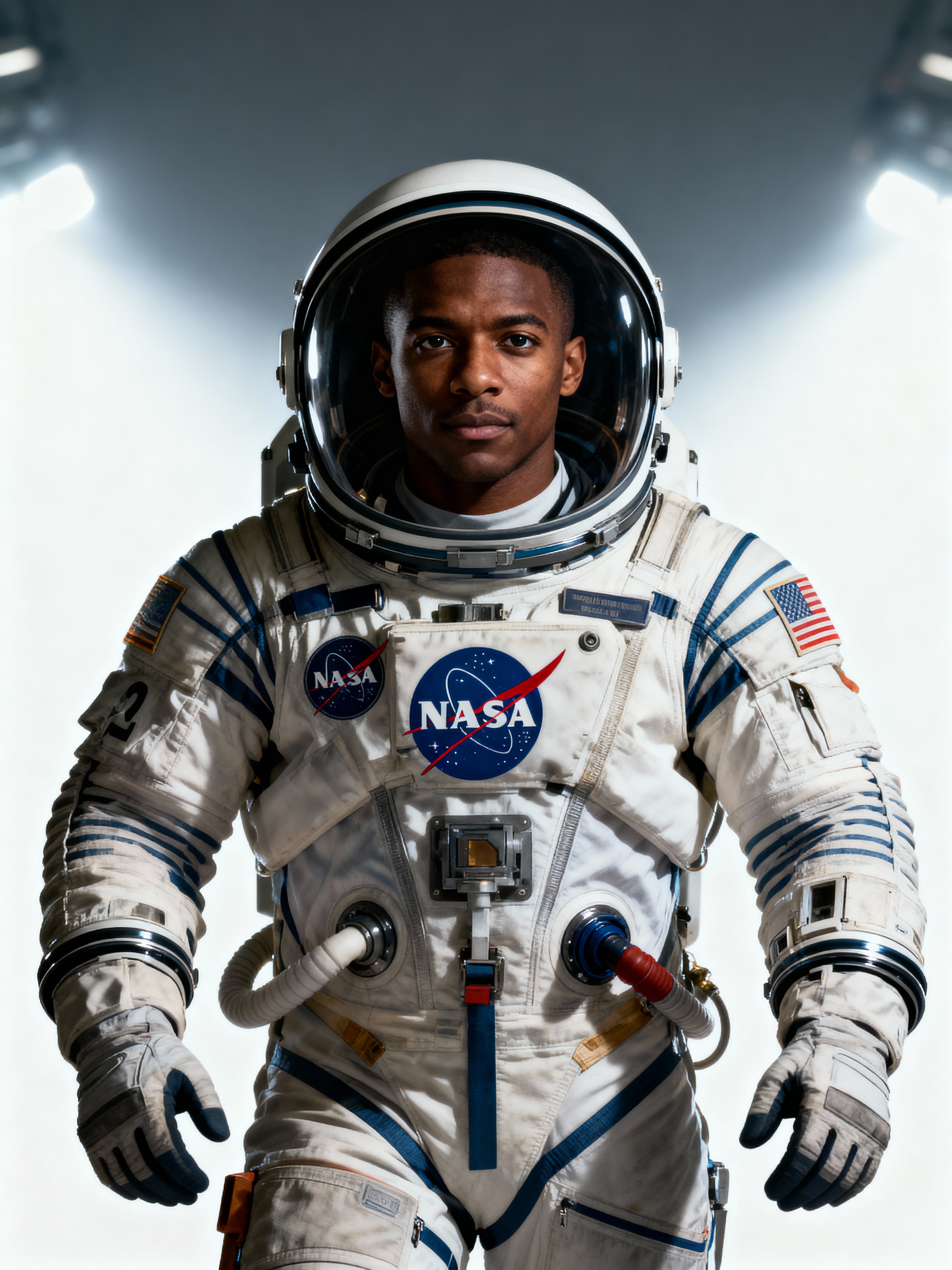 model as NASA Astronaut in space suit