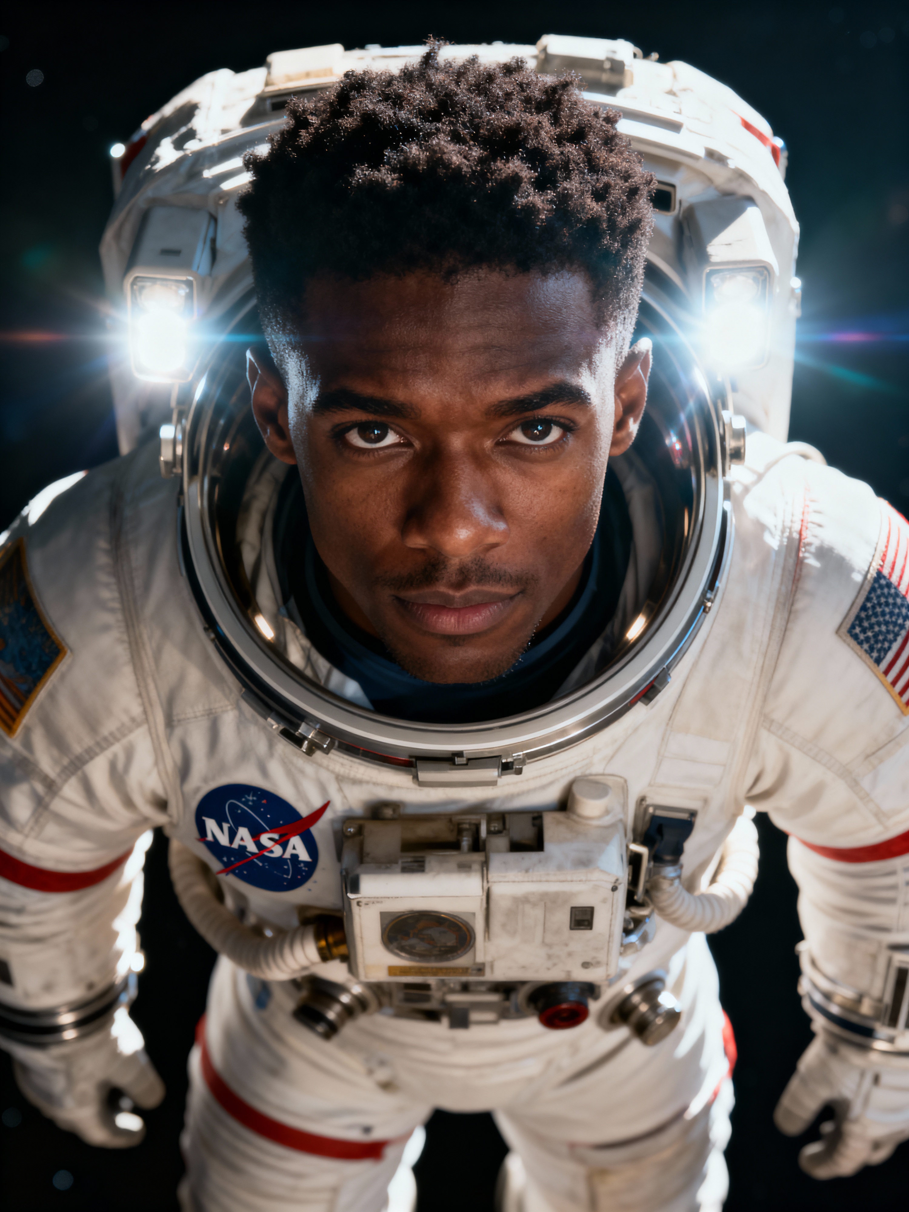 model as NASA Astronaut in space suit