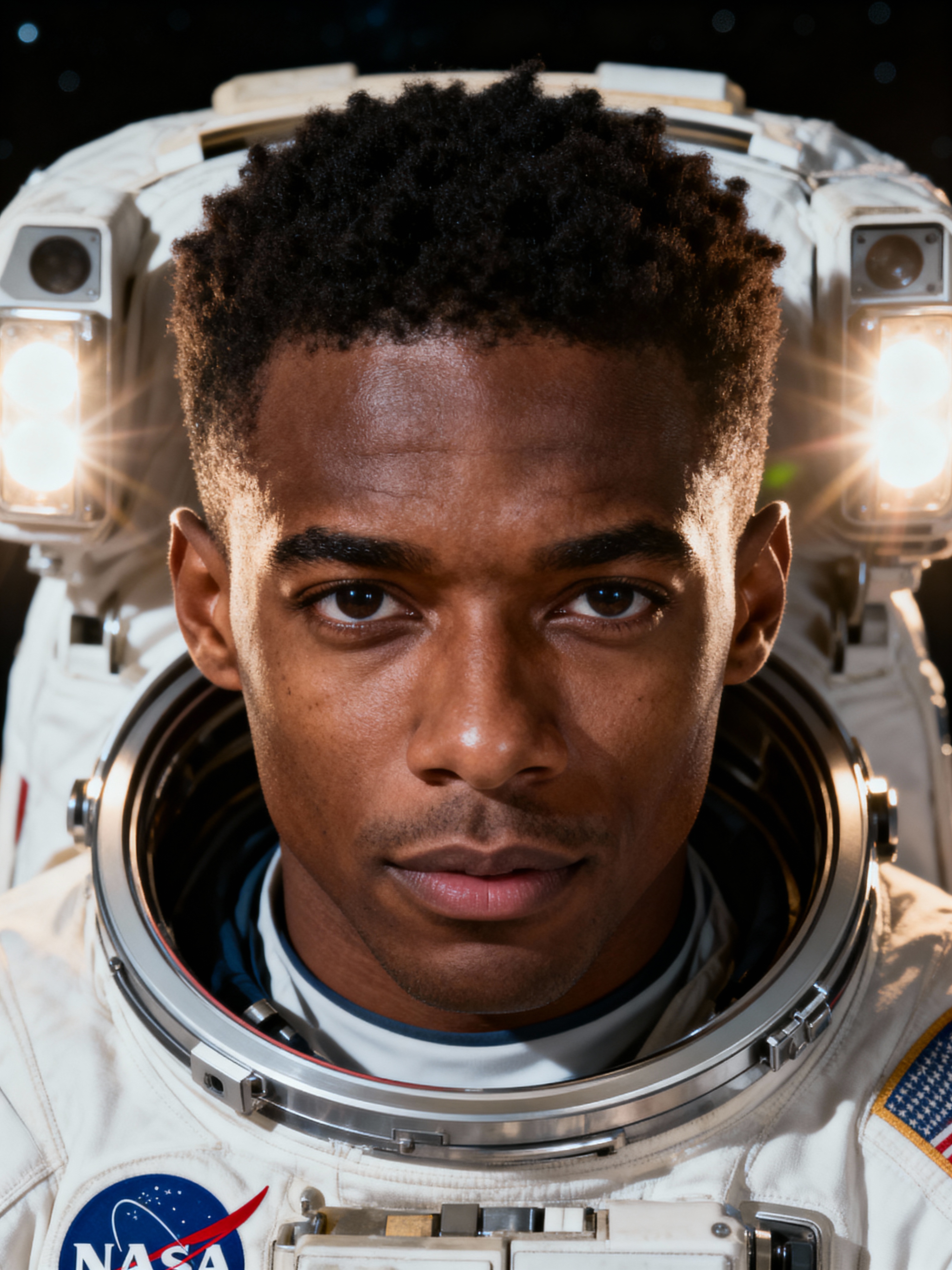 model as NASA Astronaut in space suit