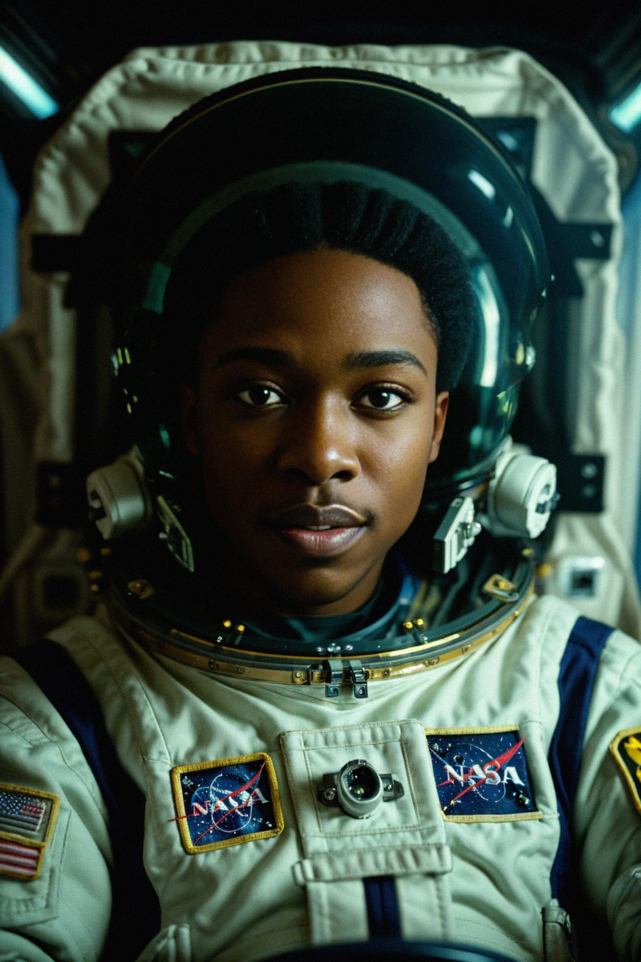 model as NASA Astronaut in space suit