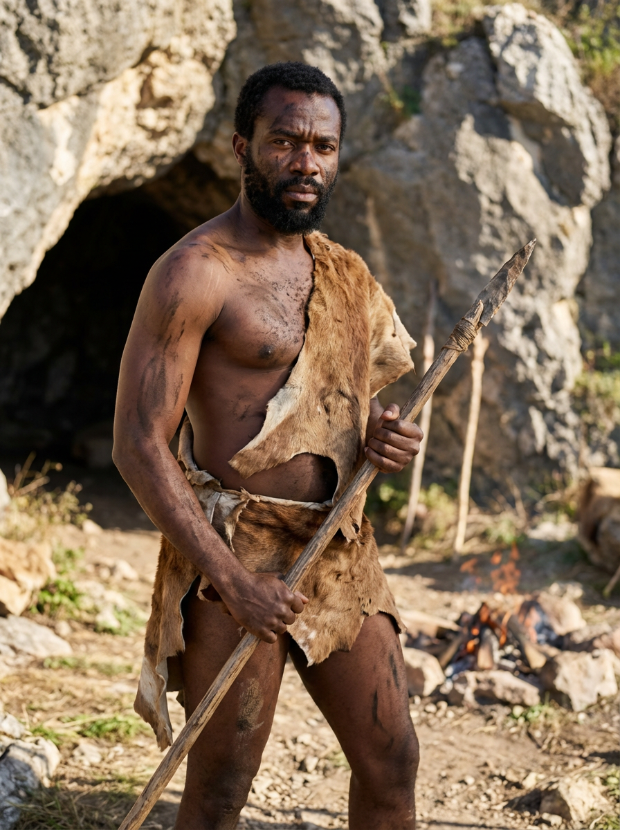 model as Neanderthal in ancient times