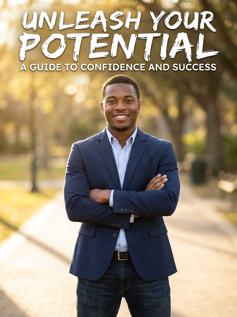 model as self-help book cover, confident inspiring pose, bright optimistic lighting, motivational energy